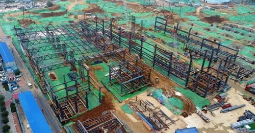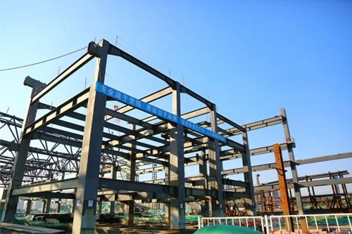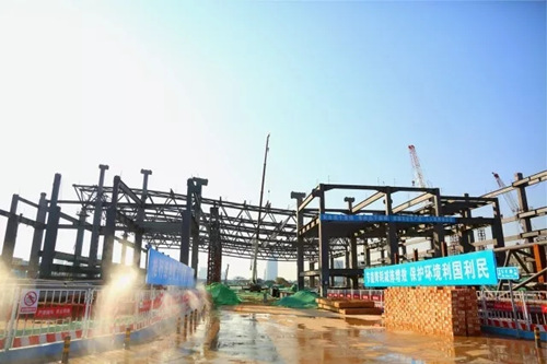 位于項目最南側,最先開工的五號展館主體鋼結構已基本完成。