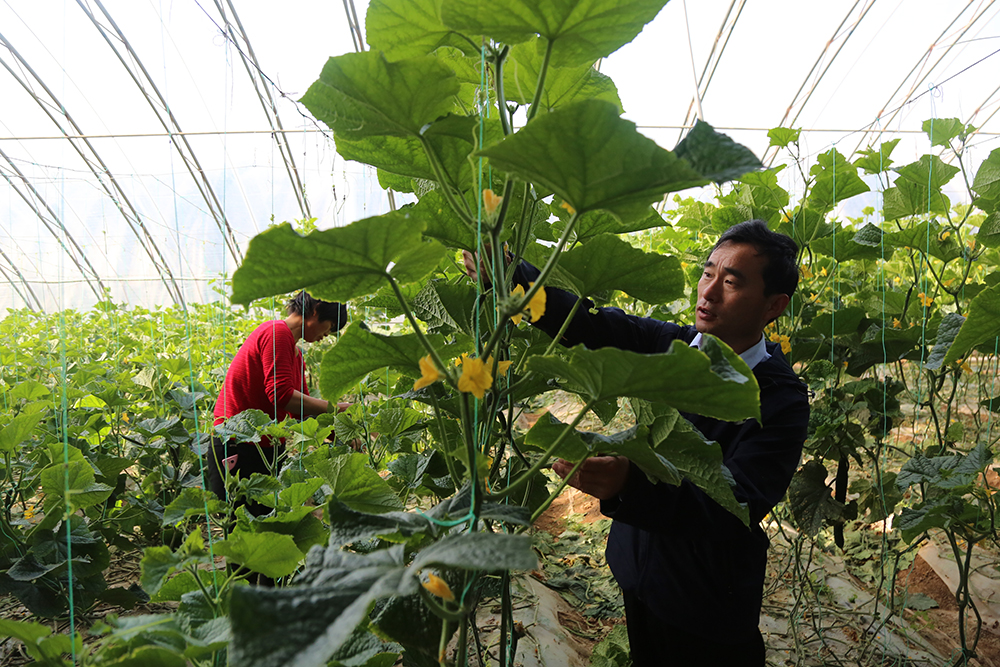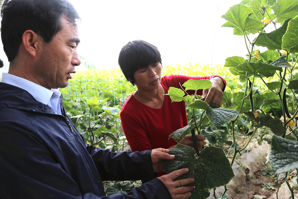 “打藥一定要按時打按量打,提前打了沒效果,拖后了就容易產生殘留,”陳德國仔細指導著黃瓜種植戶。