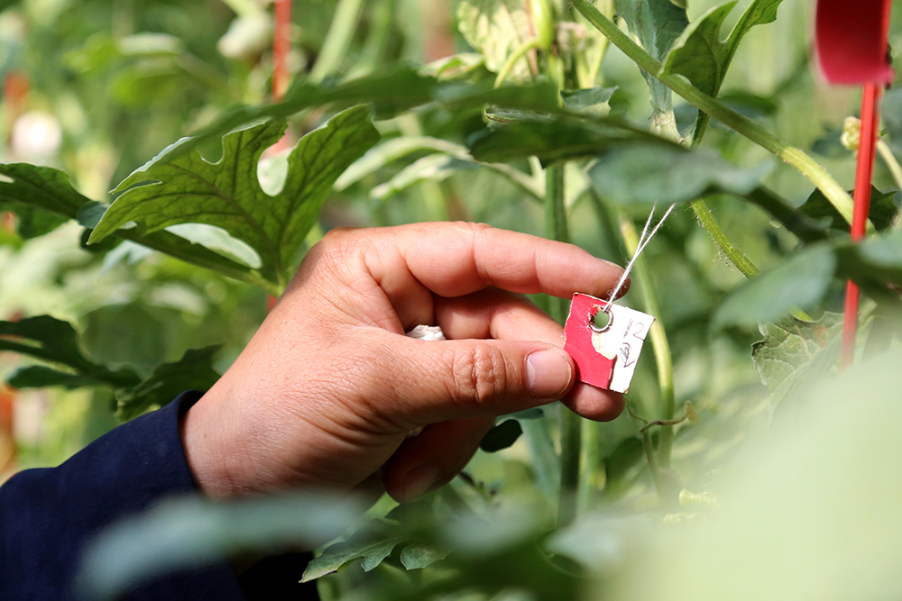 9:15在園區西瓜種植上,陳德國沒有照搬仁風西瓜的“彩繩法”,而是自創“標簽作法”,即根據授粉時間與成熟期給西瓜藤掛上不同號碼的牌子,根據生長周期判斷是否成熟。