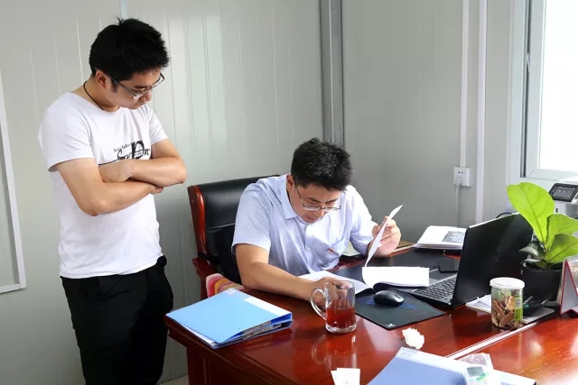 8:50濟南齊魯黃河大橋建設(shè)指揮部,我們?nèi)缂s見到了趙世超。一進入項目部“板房”辦公室,他就立馬打電話安排起了今天的工作,這種工作狀態(tài),早已是他熟悉的工作節(jié)奏。從2001年畢業(yè)開始,趙世超就一直住板房、跟工程,有著17年項目一線工作經(jīng)驗的他,是建設(shè)一線一名結(jié)結(jié)實實的“老將”。