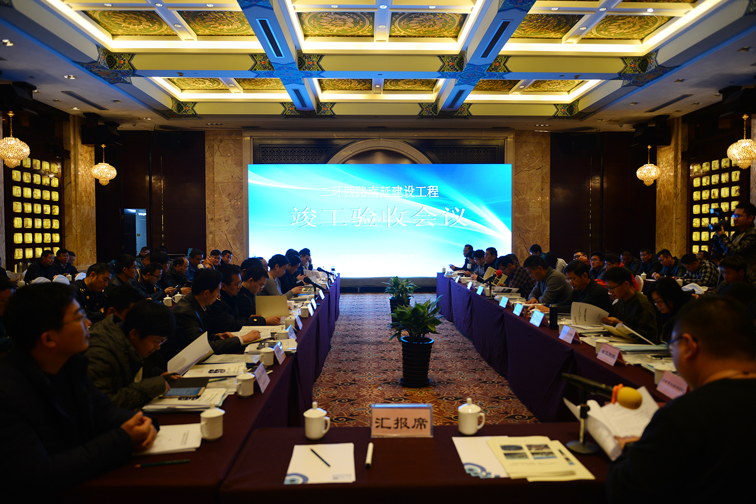 在二環南路南延建設工程竣工驗收會議上,竣工驗收小組分標段對工程觀感質量、安全及使用功能和質量控制資料進行了檢查驗收。經驗收小組審查確定,工程實體按設計文件及規范要求實施,施工規范,資料齊全,綜合評定工程質量等級為合格,并正式通過竣工驗收。