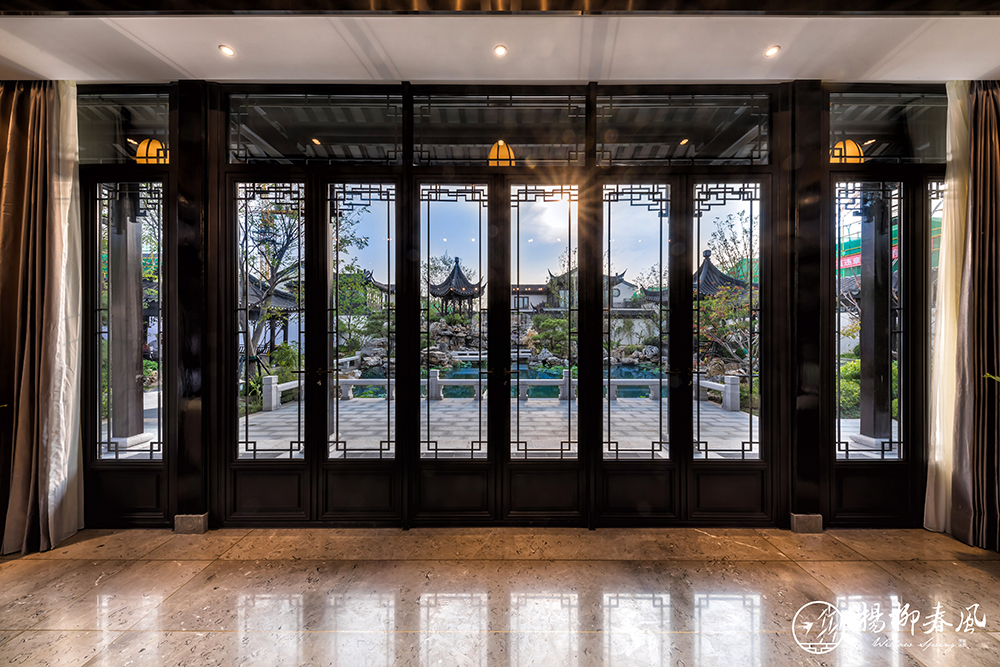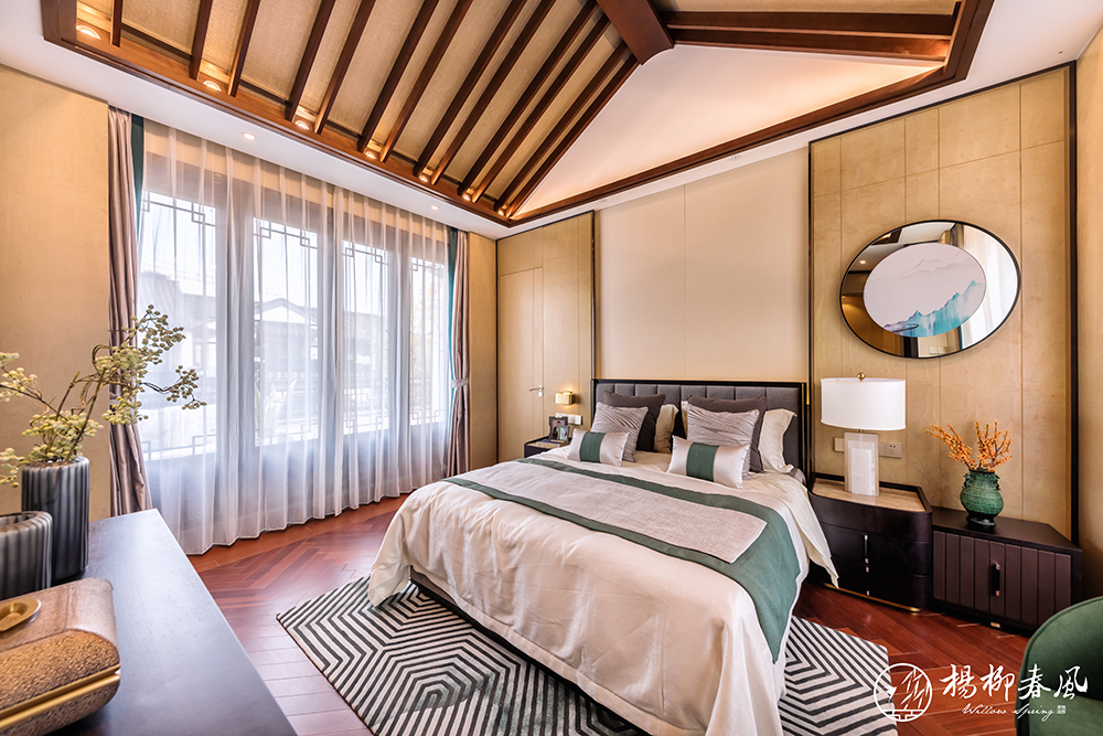 此次對外開放的樣板房一種為新亞洲風(fēng)格,以“禮”、“樂”為創(chuàng)作靈感,巧妙借用了中式園林框景的手法來演繹時(shí)尚的氣質(zhì),將室外園林造景與室內(nèi)裝飾相結(jié)合,是古典與現(xiàn)代的一次碰撞。在空間布局上,多處采用中軸對稱的傳統(tǒng)中式手法,大氣之中也展現(xiàn)著家族禮序。南北雙庭院、連接私享露臺的主臥套房、挑空設(shè)計(jì)的大面積地下空間,處處彰顯著大家風(fēng)范,在古樸的韻味中體現(xiàn)出一份現(xiàn)代的質(zhì)感。