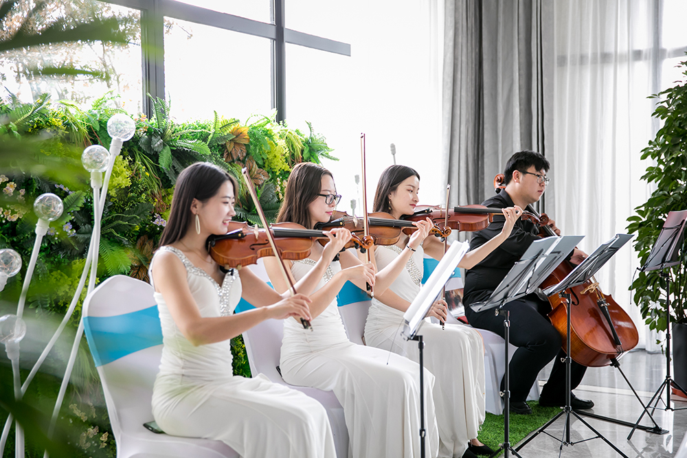 以天鵝湖為創意源點的開場視頻,傳達了春風海岸對美好生活想象與期待。項目負責人介紹了春風海岸的小鎮規劃,描繪著專屬于海岸小鎮的美好生活?;顒蝇F場還為來賓們專門定制了小提琴雅樂之會,在松林海洋的環抱之中,感受濱海小鎮愜意時光。