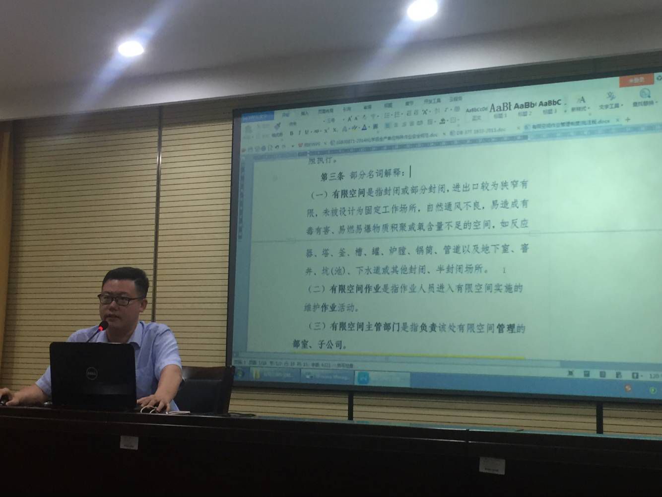 為更好的推進(jìn)落實(shí)《有限空間作業(yè)管理制度》,增強(qiáng)管理人員和作業(yè)人員對(duì)制度和相關(guān)法律法規(guī)的認(rèn)識(shí),加強(qiáng)有限空間作業(yè)審批及管控力度,降低安全事故發(fā)生概率,安全質(zhì)量部和企管人力部在6月6日下午共同組織了公司《有限空間作業(yè)管理制度》及有限空間作業(yè)相關(guān)法律規(guī)范的培訓(xùn)活動(dòng)。