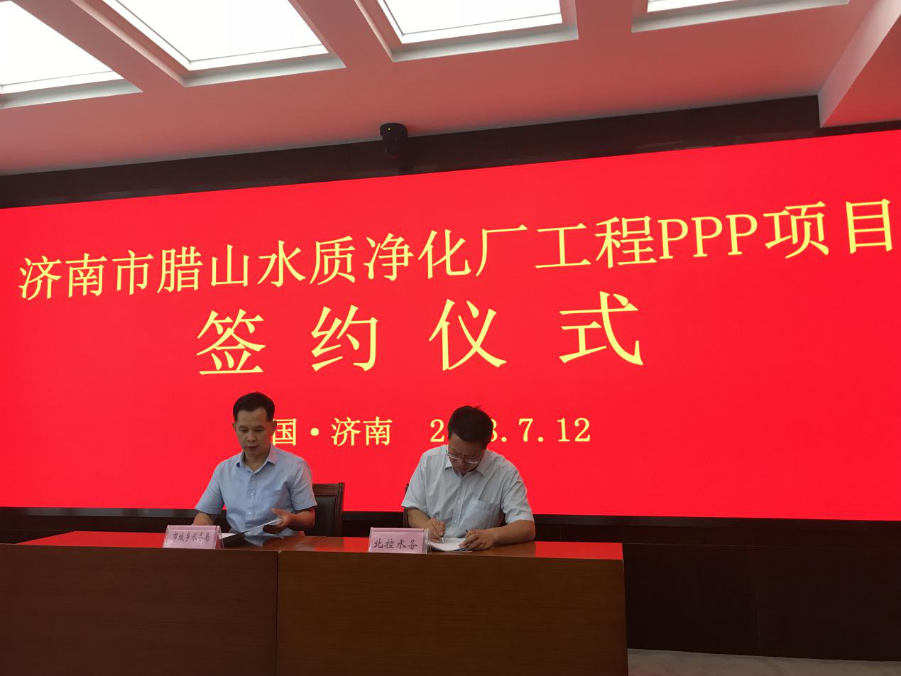 2018年7月12日上午10點30分,在龍奧大廈G1407會議室,市城鄉水務局舉行了濟南市臘山水質凈化廠工程政府和社會資本合作(PPP)項目簽約儀式,與中標單位北控水務(中國)投資有限公司簽署了ppp項目合同。會議由市城鄉水務局排水處處長湯啟剛主持,市城鄉水務局副巡視員朱丹彤做出重要講話,資產運營公司副總經理李琰、北控水務東部大區總經理于良法先后發言。