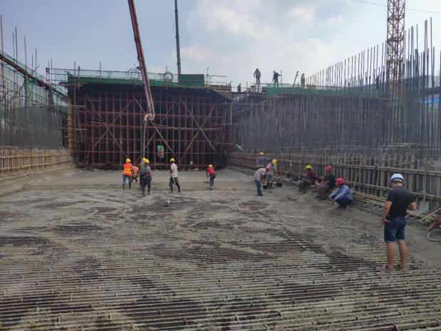 根據市委、市政府工作部署,車腳山隧道南洞口與二環南東延快速路匝道連接段納入鳳凰路工程,采用箱涵加地面道路組合形式,長約720米。工期緊、難度大,在各參建單位的大力支持與配合下,不斷攻克難關,工程順利有序開展,現階段東線箱涵底板施工60余米,西線箱涵底板施工30余米。