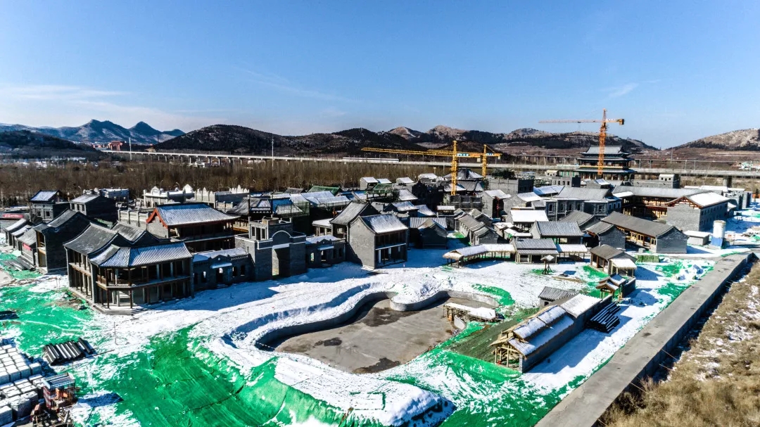 正在建設(shè)沖刺中的老濟南街,兼具明清與民國風(fēng)情的各色建筑韻味初顯,親王府、城隍廟、城門樓、書院、醫(yī)院、警察局等各類建筑一目了然,園區(qū)氛圍日益濃厚起來,不久的將來,這些場景都將會出現(xiàn)在影視作品中。現(xiàn)場施工負責(zé)人表示,現(xiàn)場正在開足馬力搶工收尾,目前園區(qū)內(nèi)共有500余名工人在不同區(qū)域,進行各個單體圍墻施工、管道及地面鋪裝、城墻砌筑與熱力等工作,確保4月15日項目主體工程竣工,達到可拍攝條件。