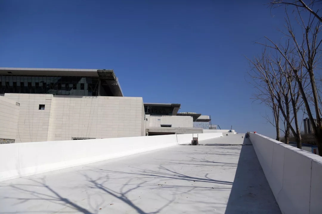 遙看會展中心,5個展館高低錯落、依次排開,頗為壯觀,外形似泉水流動起伏,建筑的陽剛之美與泉水靈動之姿完美融合。進入展館內(nèi)部,4號館、5號館內(nèi)部建設(shè)已基本完成,目前展廳基本具備布展條件,4號館、5號館均為一層展館,地面承載5噸/平方米,凈高度12~19米;1號館、2號館、3號館目前正在進行外墻保溫及涂料施工,計劃本月底整體完工,5月底竣工,屆時將滿足大型機械展等各類展會需求。