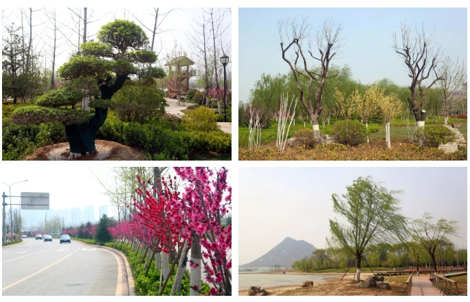 在湖邊、重要景觀節點及驢山附近區域,種植色彩豐富的秋色葉樹種,如銀杏、七葉樹、石楠及多個品種的楓樹,形成紅葉至秋、層林盡染的秋季植物景觀效果。冬季植物景觀以常綠植物為主,代表植物有雪松、油松、黑松、白皮松、大葉女貞等,搭配觀果的金銀木、枸骨等植物,可彌補園區冬季景觀枯燥感。