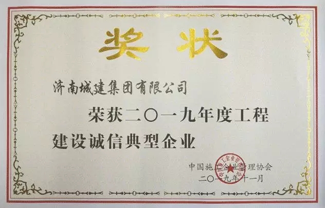 近日,中國施工企業管理協會2019年度工程建設誠信企業推介大會在北京召開。會議公布了2019年度工程建設企業社會信用評價結果,對獲得2019年度工程建設誠信典型企業、工程建設企業社會信用評價AAA級信用企業等單位進行了表彰。濟南城市建設集團所屬濟南城建集團榮獲“2019年度工程建設誠信典型企業”稱號。