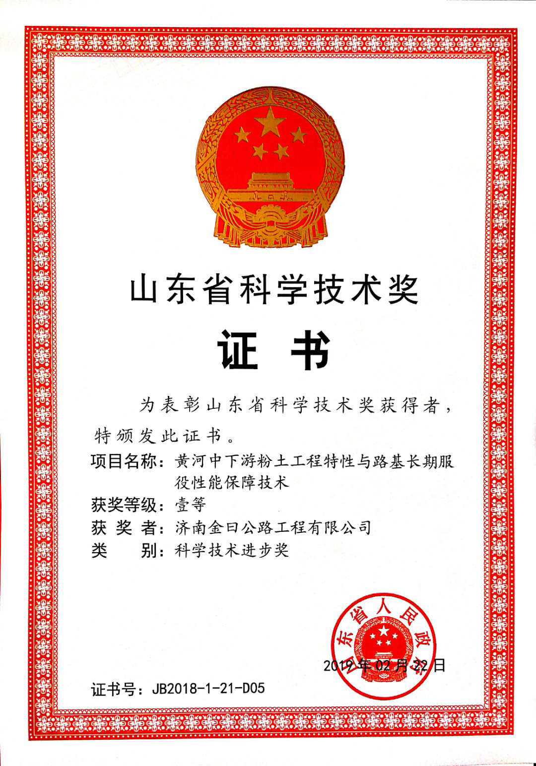 4月4日,山東省科學(xué)技術(shù)獎勵大會在山東大廈隆重舉行。濟(jì)南城市建設(shè)集團(tuán)所屬濟(jì)南金曰公路工程有限公司參與研發(fā)的《黃河中下游粉土工程特性與路基長期服役性能保障技術(shù)》科研成果,榮獲2018年山東省科技進(jìn)步一等獎。