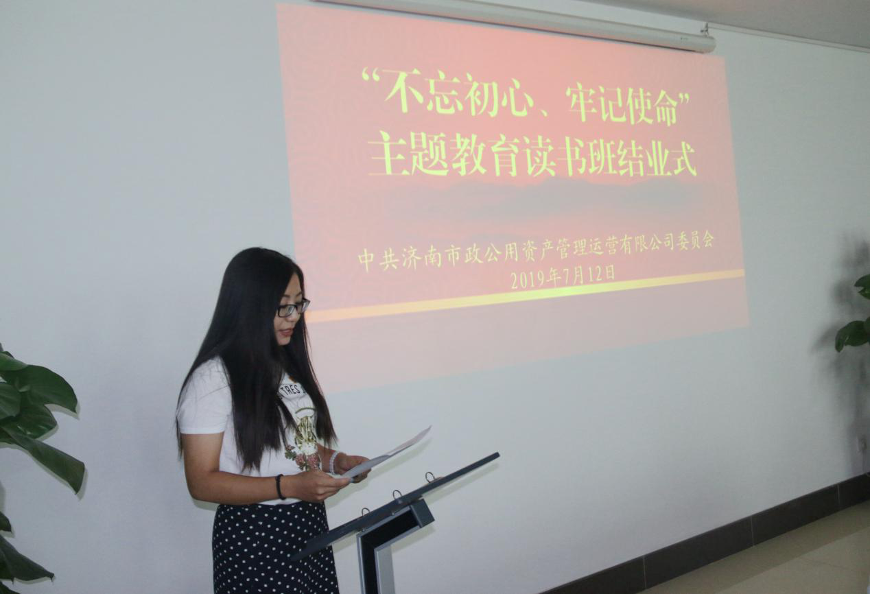根據中央要求和省委、市委安排部署,按照市委主題教育領導小組辦公室《關于舉辦第二期“不忘初心、牢記使命”主題教育讀書班的通知》和濟南城市建設集團黨委要求,7月5日至7月12日期間,濟南市政公用資產管理運營有限公司舉辦“不忘初心、牢記使命”主題教育讀書班,并于7月12日上午在公司1066會議室舉辦結業儀式。公司黨委副書記、總經理李少成同志出席結業式并講話,公司領導班子成員、主管及以上人員、全體黨員參加了此次結業式,會議由公司黨委委員、副總經理史德茂同志主持。