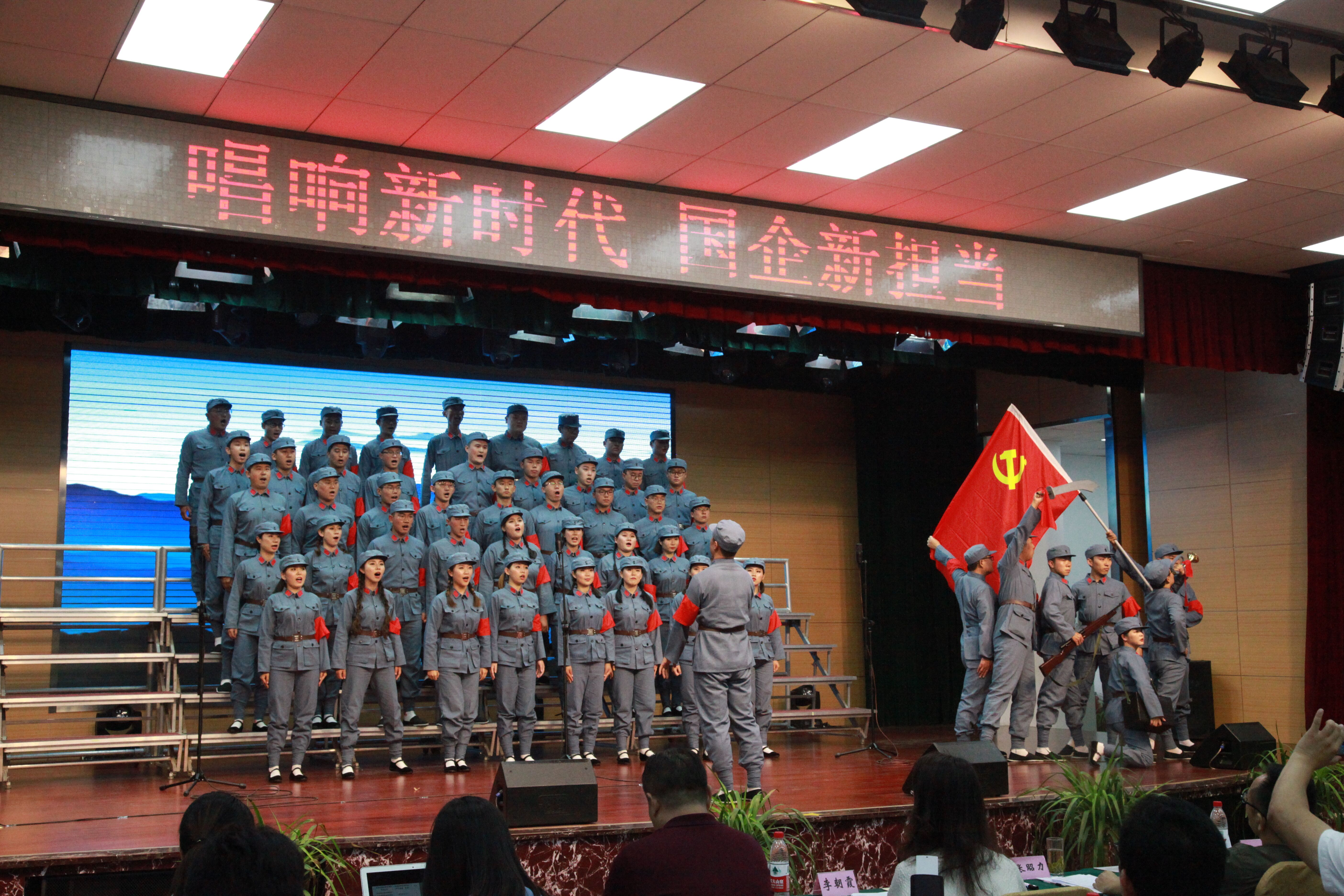 紅歌會活動現場,《鼓浪嶼之波》《歌唱祖國》《山丹丹開花紅艷艷》《我愛你中國》《我和我的祖國》《祖國不會忘記》《天耀中華》等十七首經典愛國歌曲輪番上演,歌聲在會場上空飄蕩。集團公司現場合唱的是紅色經典歌曲《在太行山上》。歌曲由三個部分組成。第一部分為詩歌朗誦。表達了抗戰時期中國軍民艱苦卓絕的奮斗歷程和大無畏的革命樂觀精神;第二部分為情景表演。描繪了八路軍戰士們在戰場上揮舞著紅色旗幟,在沖鋒的號聲中,向敵人的陣地發起沖鋒,受傷的戰士在衛生員和戰友的攙扶下在戰場上繼續前進的場景。第三部分為歌曲合唱。演員們身著八路軍軍裝,精神抖擻,情緒高昂,歌聲嘹亮,仿佛把大家帶入了戰火紛飛的年代,給人以催人奮進,所向披靡的力量,兩個聲部相互配合,高低呼應,逐步將歌曲推向高潮。