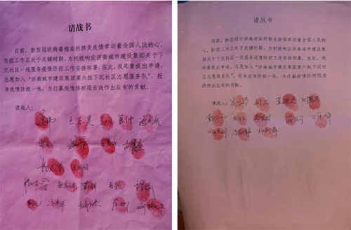 “我鄭重提出申請,志愿加入濟南城市建設集團第六批下沉社區志愿服務隊,投身疫情防控一線,為打贏疫情防控阻擊戰作出應有的貢獻!”