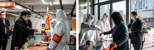 時間倒回至2月25日,蒙蒙細雨中,6位要參會的同志被“攔”在大廈門口,經過防疫人員的“盤查”和測體溫等多個程序才得以進入大廈。然而差點被拒之門外的他們不僅沒有怨言,反而盛贊“六親不認”的一線防疫人員和資產公司嚴格的防控舉措。