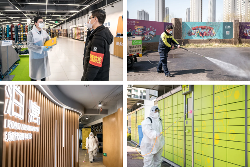 “嚴防死守、不留死角。”在陳向勤的眼里,這是防疫工作最基本也是最重要的要求。在西城大廈,一樓大廳里擺放著防疫攻略、預防措施宣傳欄;電梯按鍵用一次性保鮮膜遮擋起來,電梯里擺放著消毒液、紙巾,方便乘電梯時避免手與電梯按鈕接觸;在寫字樓入口疫情防控站,消毒地墊、一米間隔線等各類消毒設施一應俱全……對細節的嚴格把控,讓西城資產公司的防疫舉措無縫式覆蓋各個管轄單位,筑起堅實的防控防線。