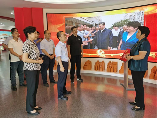 在三澗溪村,工作人員帶領大家重走習近平總書記的考察足跡。在村委會黨群服務中心,深入了解了三澗溪村的成長史、黨組織的發展歷程、黨組織建設經驗和先進做法,以及“四鄰聯動”等為民服務體系。在鄉村振興主題展館,工作人員為大家講解了習近平總書記親臨三澗溪村視察指導的有關情形,并結合實物、圖片、視頻、展板等載體講述了三澗溪黨委不忘初心,牢記使命,擔當作為,團結帶領村民脫貧致富的奮斗歷程。期間,工作組與三澗溪村黨委書記高淑貞就黨建引領、鄉村振興等方面進行了暢談交流,參觀結束,全體人員在黨旗前重溫了入黨誓詞。