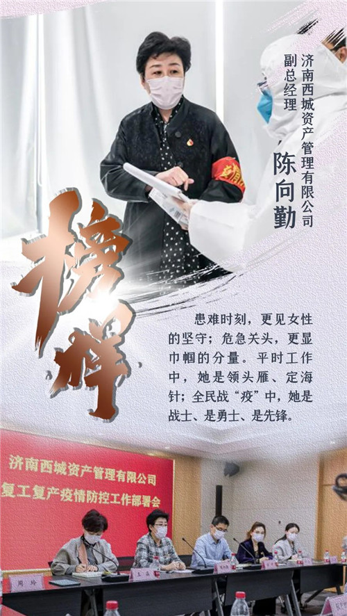 目前,濟南全面復工復產,陳向勤對疫情防控工作進行再部署、再強調、再落實,做到“十個一律”、“十個嚴禁”。她提前出手、摸底調查,切實堅守聯防聯控嚴密防線,幫助運營單位制定應對措施,關鍵時刻施以援手,保障復工復產后資產管理公司所轄寫字樓、商業(yè)綜合體的疫情防控工作萬無一失。