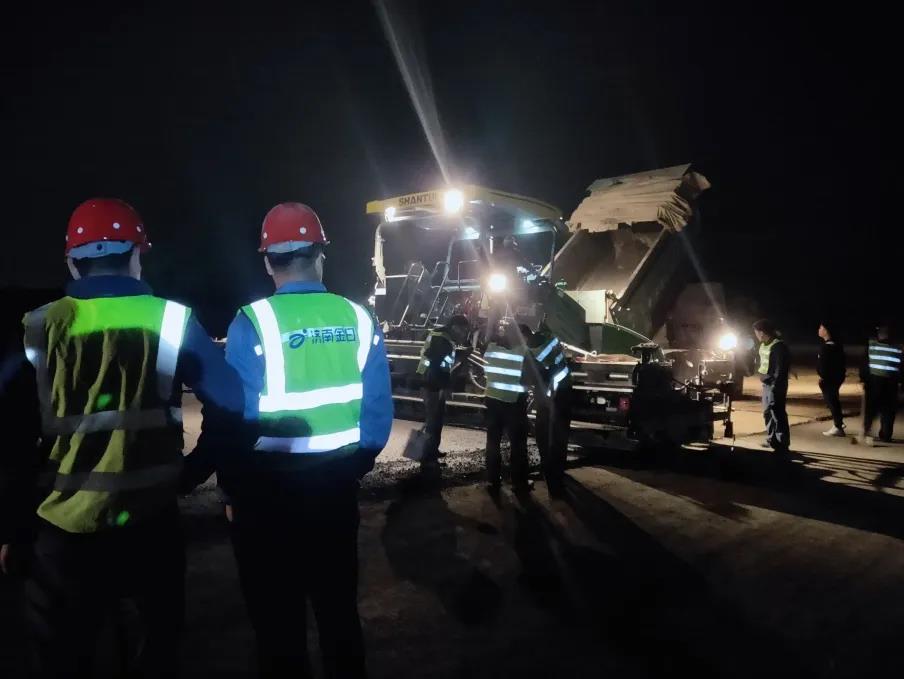 春節(jié)期間,預(yù)制梁也從未間斷生產(chǎn),為保證預(yù)制梁生產(chǎn)架設(shè)工作,綜合場(chǎng)站內(nèi)管理人員與工人共計(jì)20余人,始終堅(jiān)守崗位,并組織成立青年突擊隊(duì),進(jìn)行交通導(dǎo)改、箱梁架設(shè),順利跨越青銀高速(青島至銀川方向)。全面復(fù)工后,項(xiàng)目生產(chǎn)、防疫兩手抓,為降低傳播風(fēng)險(xiǎn),根據(jù)實(shí)際情況進(jìn)行分散施工,陸續(xù)在工地上開展了預(yù)制梁澆筑、架設(shè)、路基翻曬碾壓、橋面鑿毛、現(xiàn)澆梁施工、場(chǎng)地硬化等多個(gè)作業(yè)面。