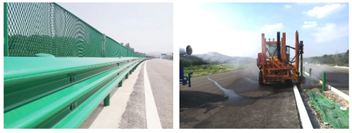 項目注重應用新材料新技術,金衢公司綜合分析當地氣候、水文、地形、地質條件,對路基有針對性的采取換填、沖擊碾壓、強夯等措施,對路床采取摻灰處置,有效增強路基強度;路面設計中瀝青面層采用改性瀝青,延長路面使用壽命;安全設施標志鋼構件均采用鍍鋅處理,波形梁護欄立柱等構件均采用環氧鋅基聚酯復合涂層進行防腐處理等,充分增強關鍵部位和重要設施耐久性。