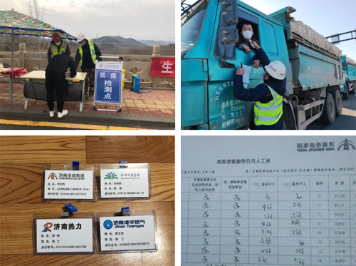 根據城建集團開(復)工專項疫情防控方案要求,項目部編制詳細的防控方案,要求選用濟南周邊縣市施工人員,提前摸排查明人員14天身體狀況、行動軌跡,并出具復工人員健康證,確認無誤登記備案后,由項目部組織專用車輛點對點接送。項目部辦公區、生活區、施工現場采取全封閉管理,均只設一個進出口;設置體溫檢測點,所有人員均需日常體溫檢測兩次,詳細記錄人員信息、體溫、進出原因等信息;各區域實行每天三次消毒并安排責任到人。同時,對各參建單位人員實行聯防聯控,制作佩戴實名制胸卡,出入現場實行實名登記測溫,嚴禁未登記人員進入施工區域。