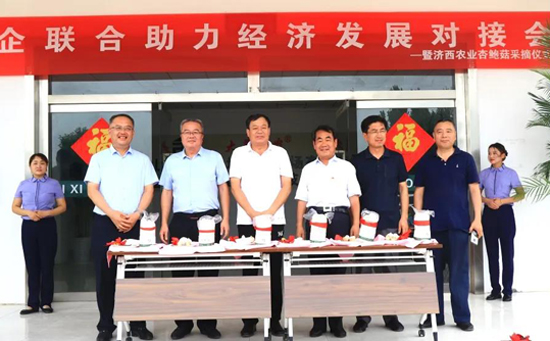 7月18日,由濟(jì)西農(nóng)業(yè)發(fā)起的“政企聯(lián)合助力經(jīng)濟(jì)發(fā)展對(duì)接會(huì)暨濟(jì)西農(nóng)業(yè)杏鮑菇采銷儀式”在濟(jì)西食用菌項(xiàng)目部啟動(dòng)。長(zhǎng)清區(qū)副區(qū)長(zhǎng)劉永亭、省派長(zhǎng)清區(qū)鄉(xiāng)村振興服務(wù)隊(duì)隊(duì)長(zhǎng)邱劍峰、建設(shè)集團(tuán)副總經(jīng)理徐文東參加活動(dòng)。