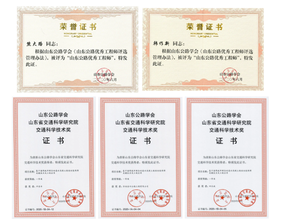 金曰公司總經(jīng)理熊大路、金諾公司總經(jīng)理韓作新榮獲第四屆“山東公路優(yōu)秀工程師”榮譽(yù)稱號(hào)。金曰公司《基于海綿城市理念的透水混凝土路面性能保障關(guān)鍵技術(shù)及工程應(yīng)用》科研成果榮獲山東公路學(xué)會(huì)山東省交科院交通科學(xué)技術(shù)一等獎(jiǎng),金宇公司《年久鋼質(zhì)護(hù)欄立柱埋深無(wú)損檢測(cè)精度控制與現(xiàn)場(chǎng)應(yīng)用研究》科研成果榮獲山東公路學(xué)會(huì)山東省交科院交通科學(xué)技術(shù)三等獎(jiǎng)。