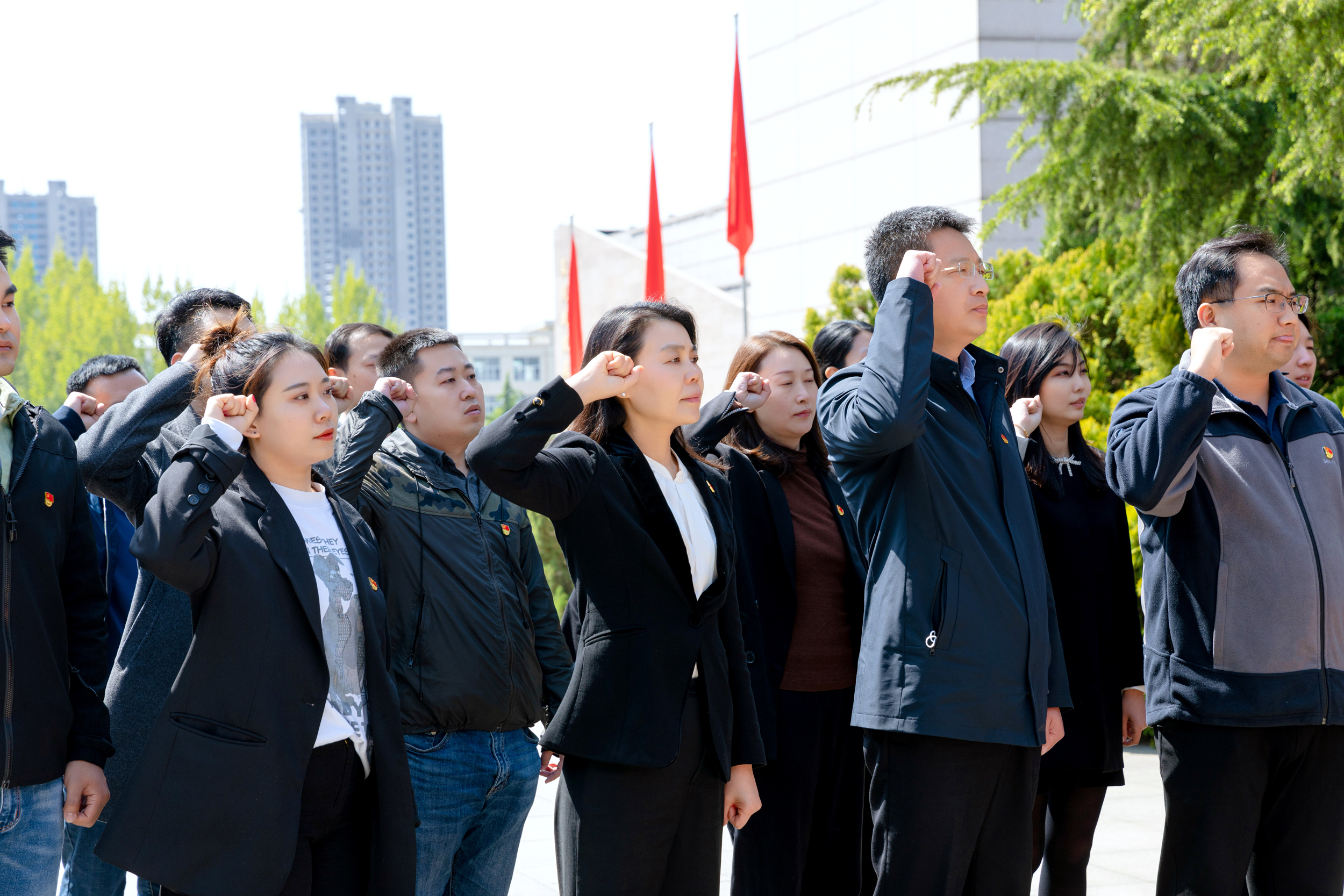 在革命烈士紀(jì)念碑旁,全體黨員面對黨旗莊嚴(yán)宣誓,重溫入黨誓詞,時刻提醒自己所肩負(fù)的神圣使命和責(zé)任,始終牢記黨員身份、對黨忠誠。