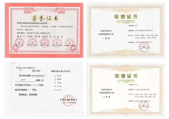 項(xiàng)目在保證施工安全、質(zhì)量、工期的同時(shí),積極開(kāi)展優(yōu)化、創(chuàng)新活動(dòng)。“精工”QC小組《減小新舊路基搭接處的病害率》課題,被濟(jì)南市質(zhì)量管理協(xié)會(huì)評(píng)為2020年度一等獎(jiǎng),山東公路協(xié)會(huì)一等獎(jiǎng),并被評(píng)為2020年濟(jì)南市“講理想、比貢獻(xiàn)”活動(dòng)優(yōu)秀科技創(chuàng)新項(xiàng)目;“騰飛”QC小組《提高通行路段圍擋清潔度》課題,被濟(jì)南市質(zhì)量管理協(xié)會(huì)評(píng)為2020年度二等獎(jiǎng)。