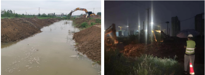 27日晚,集團工程二部組織各全詢單位現(xiàn)場管理人員56人,濟南金曰公路工程有限公司應(yīng)急工人180人,大型挖掘機40臺,待命挖掘機30臺,破碎錘8臺,渡船13艘,防汛物資車5輛按時到位,直至29日凌晨,經(jīng)過連續(xù)兩晚奮戰(zhàn),已將河道斷面內(nèi)侵萎縮、邊坡坍塌、河槽淤積、水面漂浮物、規(guī)劃道路堵塞現(xiàn)狀河道等多處險情一一排除,完成沿線全部堵點清淤疏浚任務(wù)。