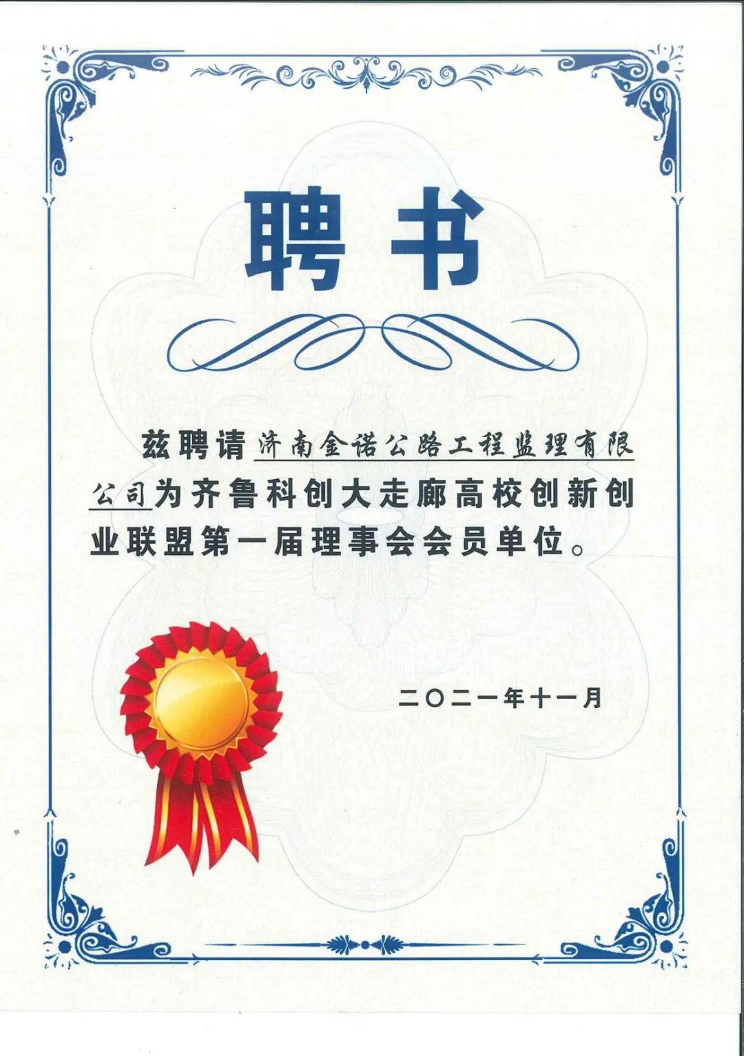 近日,齊魯科創(chuàng)大走廊高校創(chuàng)新創(chuàng)業(yè)聯(lián)盟成立大會在山東青年政治學(xué)院召開,濟(jì)南金諾公路工程監(jiān)理有限公司當(dāng)選為第一屆理事會會員單位。