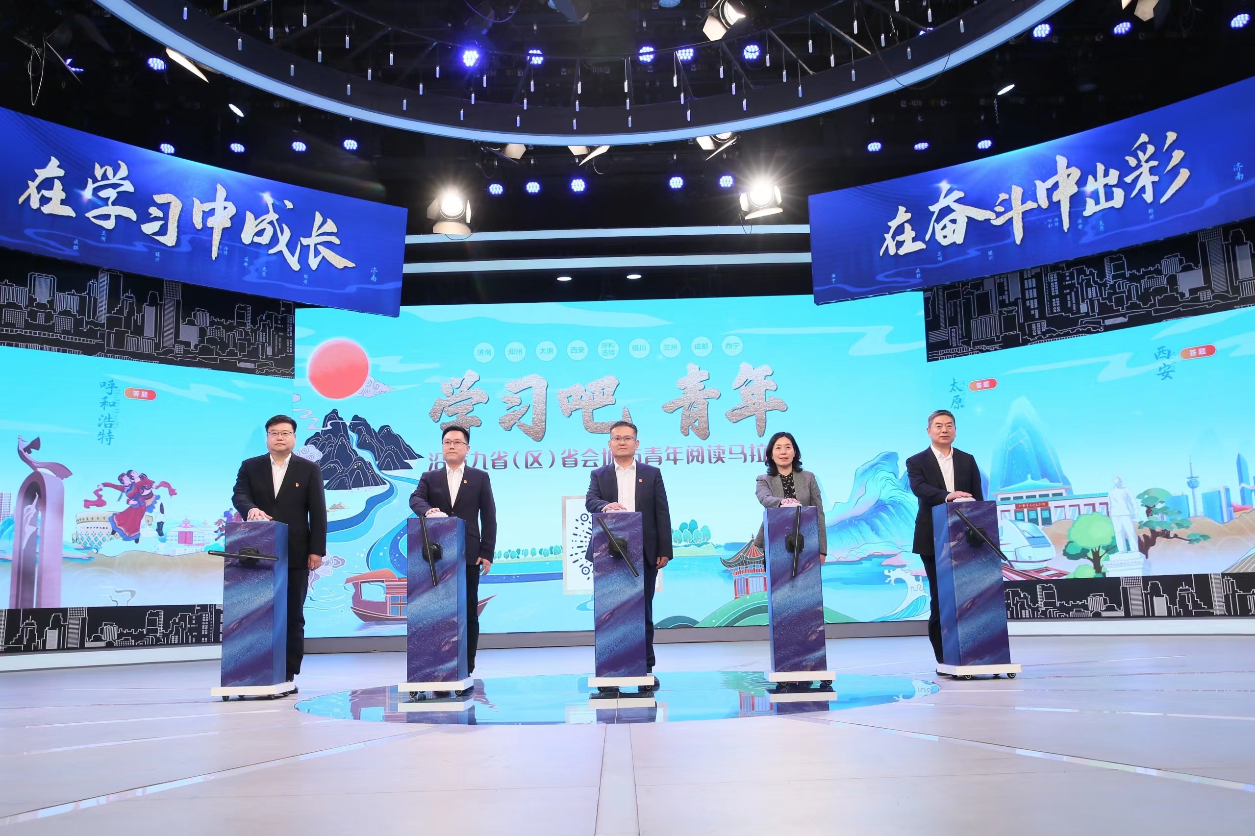 為深入學習宣傳貫徹落實黨的二十大精神和習近平總書記關于黃河流域生態保護和高質量發展重要講話精神,弘揚“黃河文化”,講好“黃河故事”,11月14日,“學習吧,青年”沿黃九省(區)省會城市青年閱讀馬拉松暨泉城年輕干部閱讀馬拉松挑戰賽啟動儀式在濟南廣播電視臺演播大廳舉行。本次活動由中共濟南市委組織部、中共濟南市委宣傳部、共青團濟南市委、濟南廣播電視臺、濟南城市建設集團有限公司共同主辦,沿黃九省(區)省會城市團委、沿黃九省(區)省會城市廣播電視臺聯動支持。