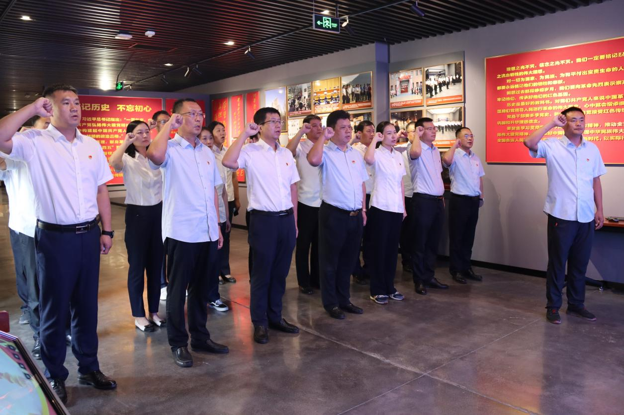 全體黨員干部滿懷崇敬之情,仔細瞻仰了大量珍貴的史料圖片和烈士遺物,詳細了解了山東早期黨組織發(fā)展與斗爭的崢嶸歲月,深情回望了鄧恩銘、劉謙初等“四五”烈士波瀾壯闊的革命生涯,全體黨員干部面對黨旗,重溫入黨誓詞,并集體觀看了文獻紀錄片。
