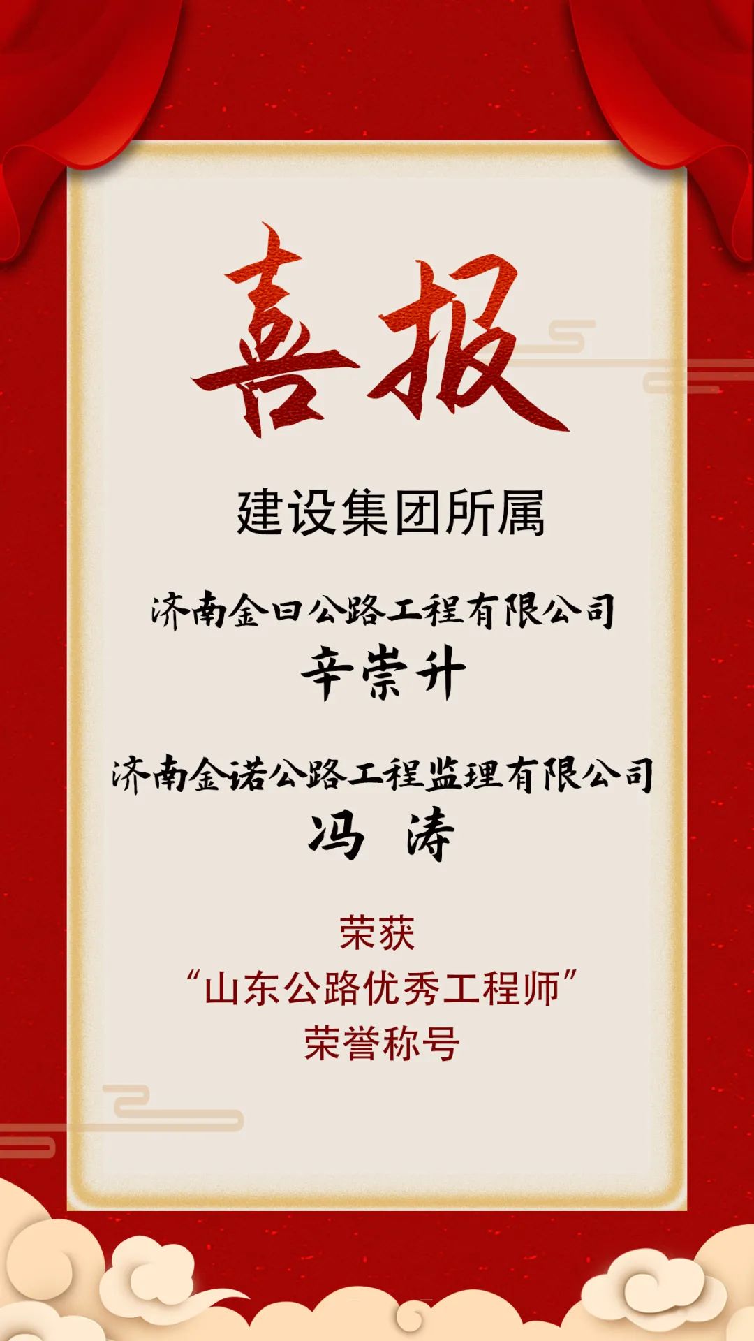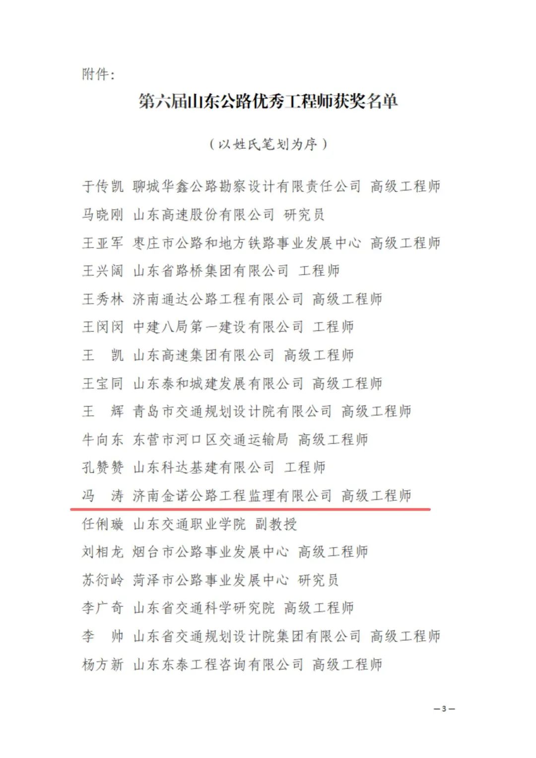 近日,山東公路學(xué)會(huì)發(fā)布《山東公路學(xué)會(huì)關(guān)于表彰第六屆山東公路優(yōu)秀工程師的決定》的通知,建設(shè)集團(tuán)所屬濟(jì)南金曰公路工程有限公司副總經(jīng)理辛崇升、濟(jì)南金諾公路工程監(jiān)理有限公司副總經(jīng)理馮濤榮獲 “山東公路優(yōu)秀工程師”榮譽(yù)稱號。