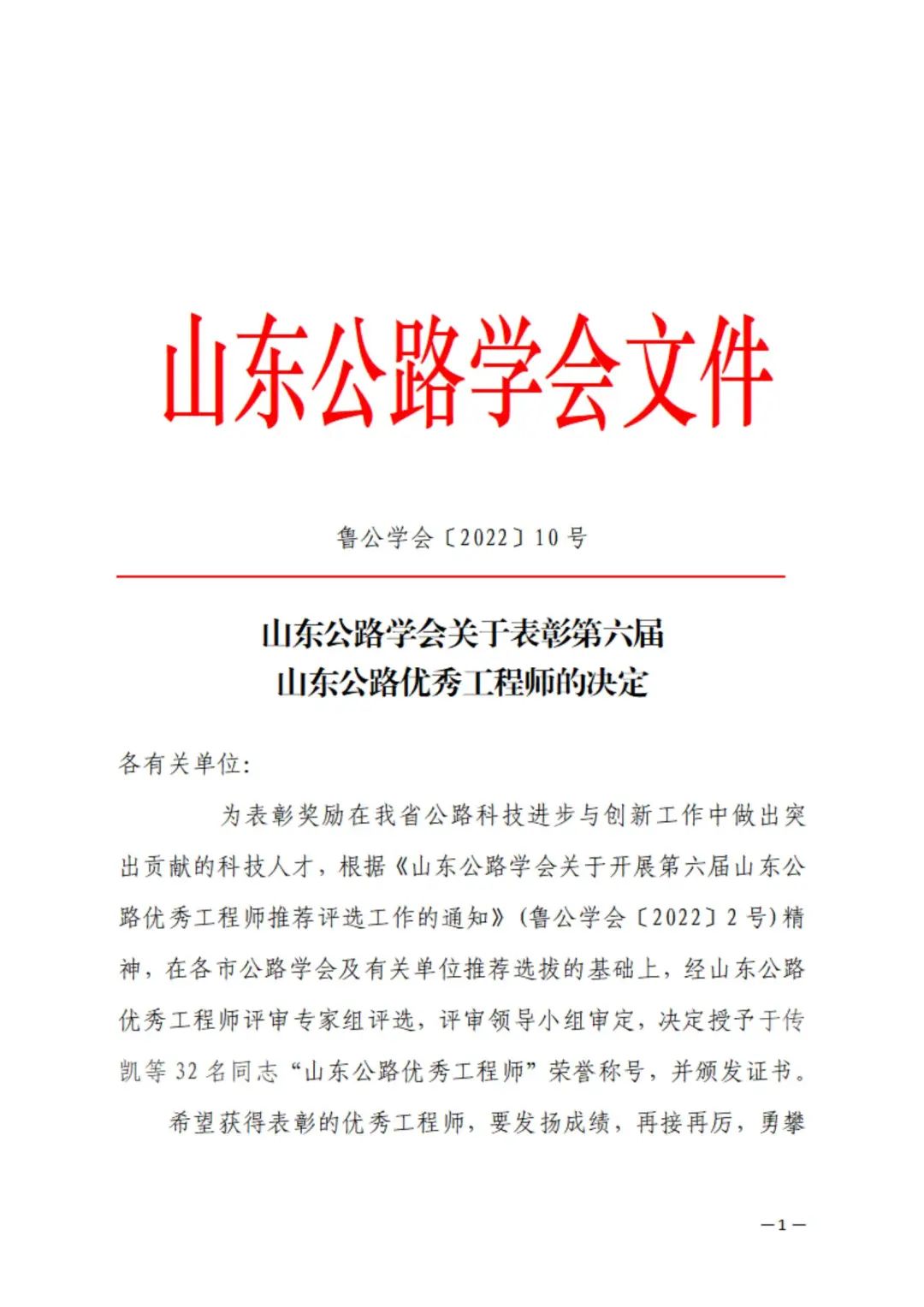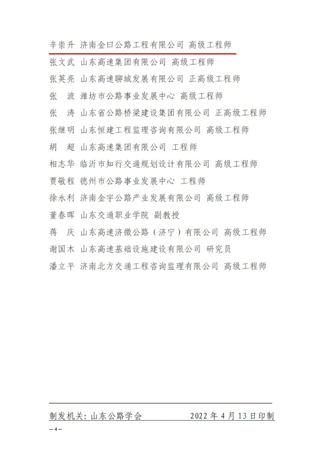 “山東公路優(yōu)秀工程師”評選活動(dòng)由山東公路學(xué)會(huì)組織,每年在全省范圍內(nèi)評選一次,旨在激勵(lì)廣大公路交通科技工作者積極投身山東公路事業(yè),發(fā)揚(yáng)創(chuàng)新、求實(shí)、協(xié)作、奉獻(xiàn)精神,推動(dòng)山東省公路交通科技進(jìn)步和創(chuàng)新。