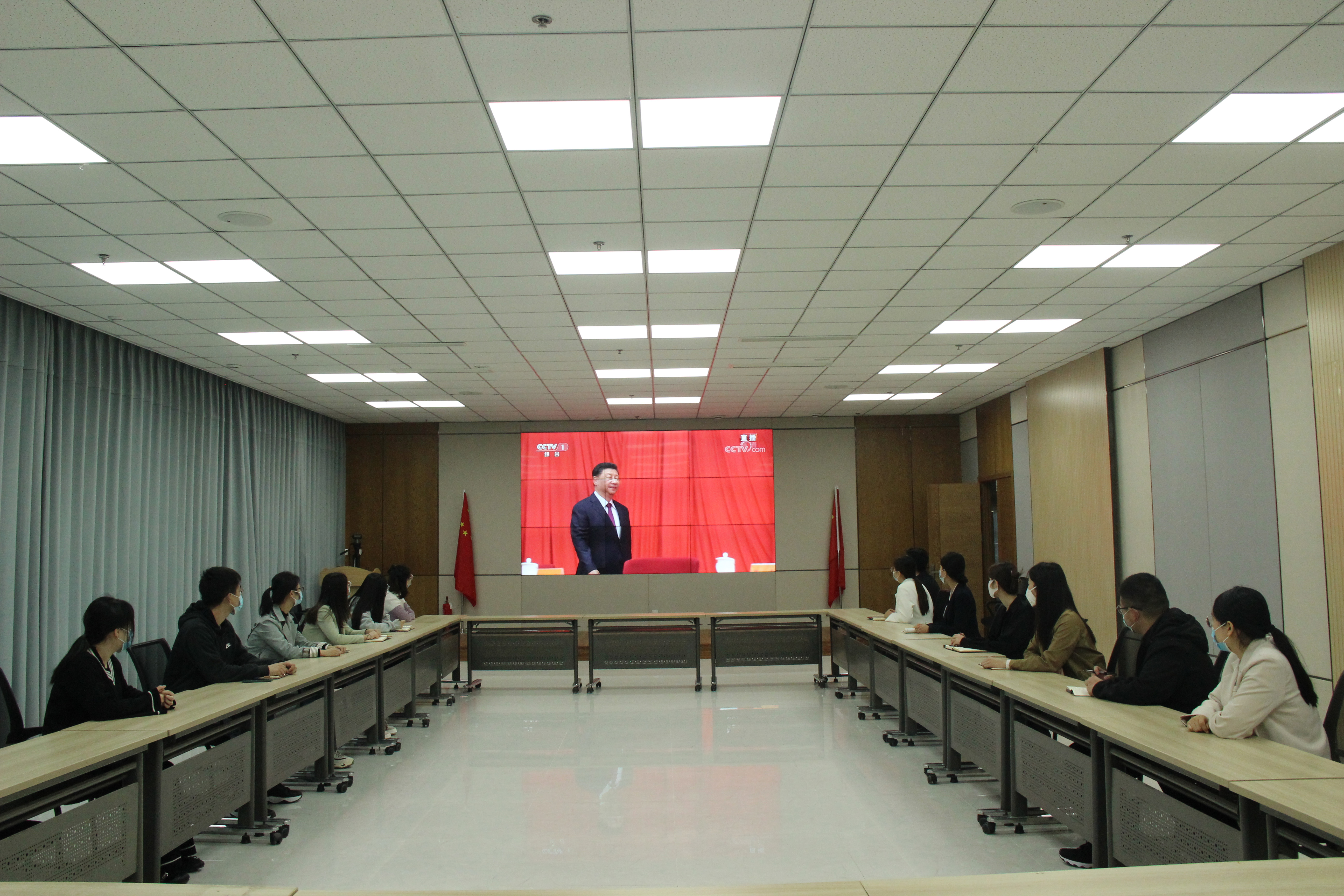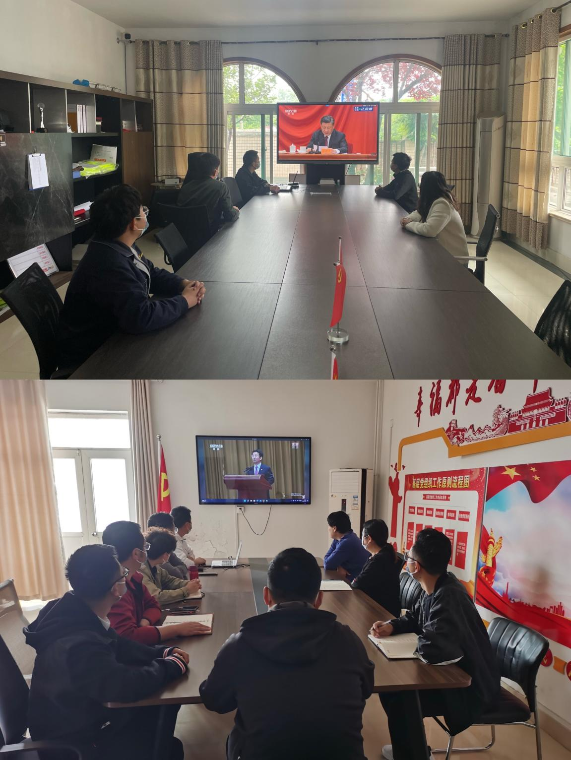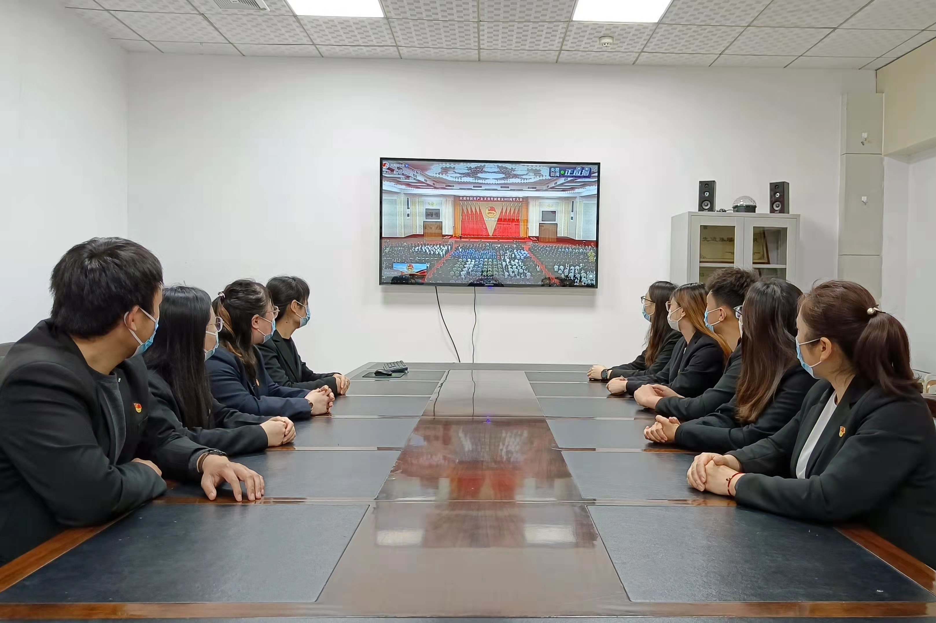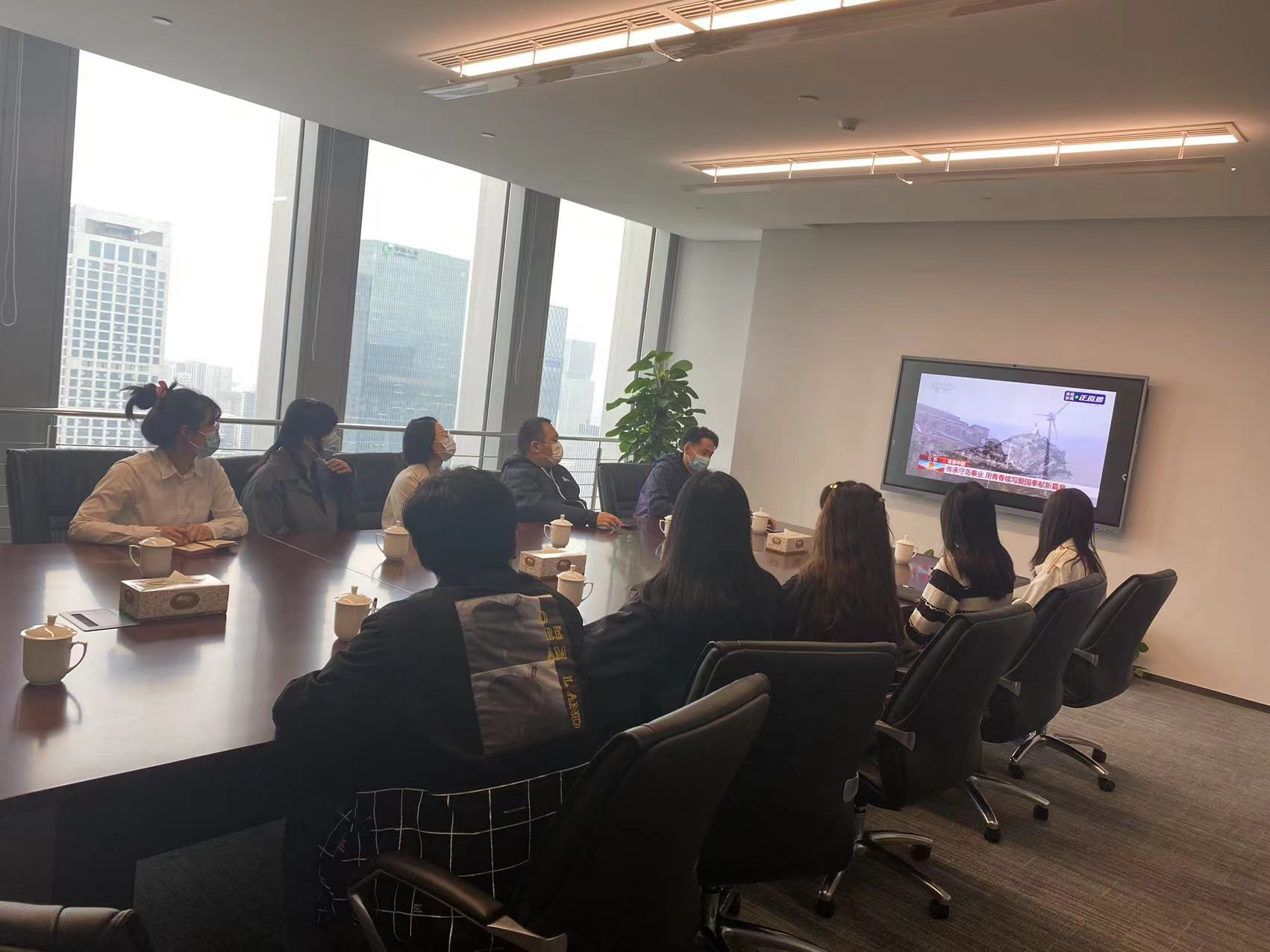 公司團委成員在會議室集中收看,各支部成員結合各自實際,分別組織收看。
