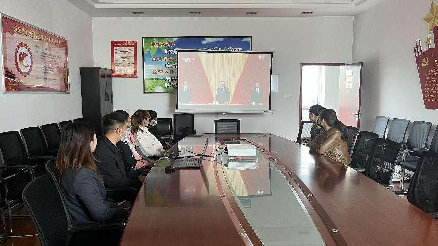 濟南建設集團投資有限公司團支部組織在崗團員青年、團干部集中觀看直播。