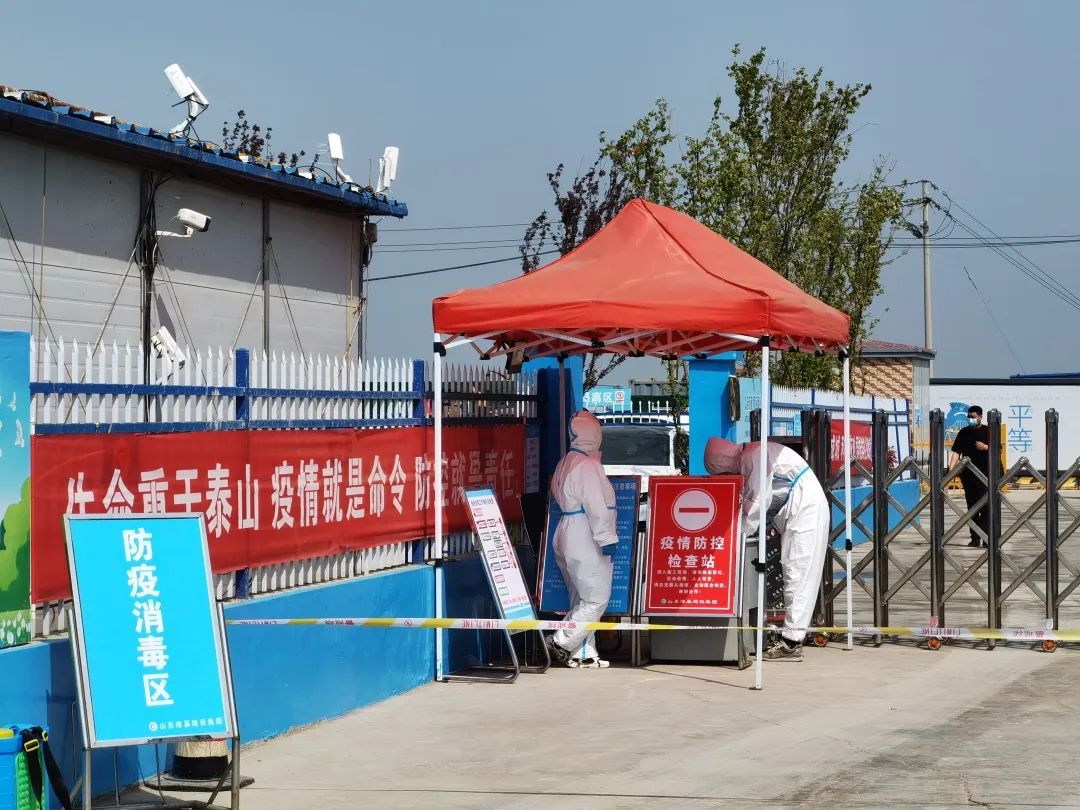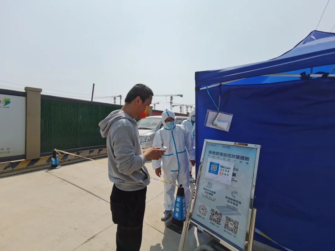 在濟南市新舊動能轉換起步區大橋安置五區項目入口,幾名身穿防護服的工作人員嚴格對進出場人員進行信息自動化登記和健康信息核驗。
