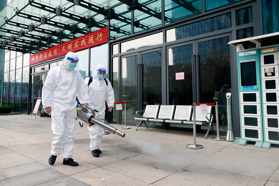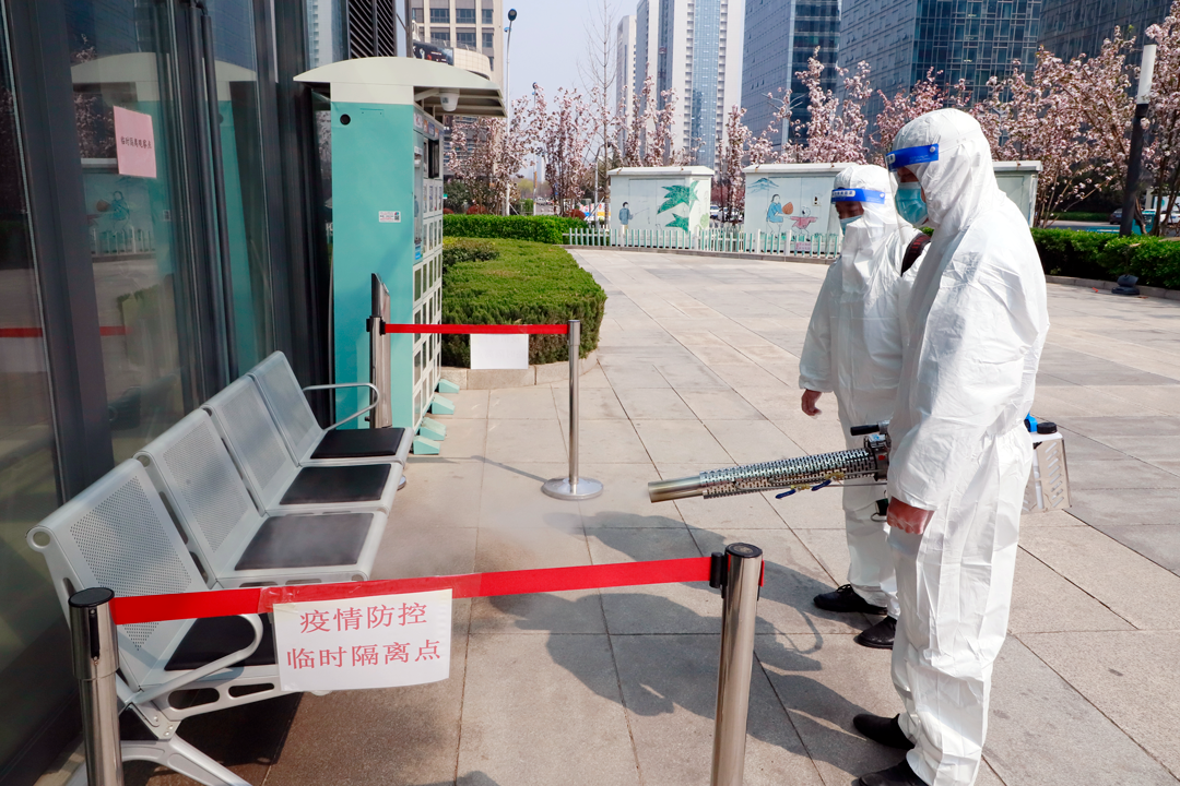 ?。ú捎萌詣?dòng)脈沖動(dòng)力水霧煙霧彌霧機(jī)對(duì)西城大廈、地下停車(chē)場(chǎng)、避難通道等公共區(qū)域進(jìn)行高溫蒸汽專業(yè)消殺,并在西客站東廣場(chǎng)南北車(chē)庫(kù)高鐵出入口安裝熱成像測(cè)溫一體機(jī),進(jìn)一步加強(qiáng)對(duì)重點(diǎn)區(qū)域、重點(diǎn)部位疫情防控。)