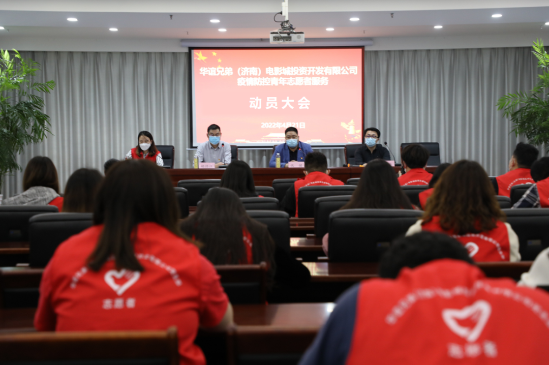 按照市委、市政府相關指示精神和濟南城市建設集團統(tǒng)一部署,4月21日,華誼兄弟(濟南)電影城投資開發(fā)有限公司召開疫情防控志愿服務動員大會,動員公司志愿者踴躍參與村(社區(qū))人員落地、入戶排查和政策宣傳等疫情防控工作,筑牢群防群治防線。