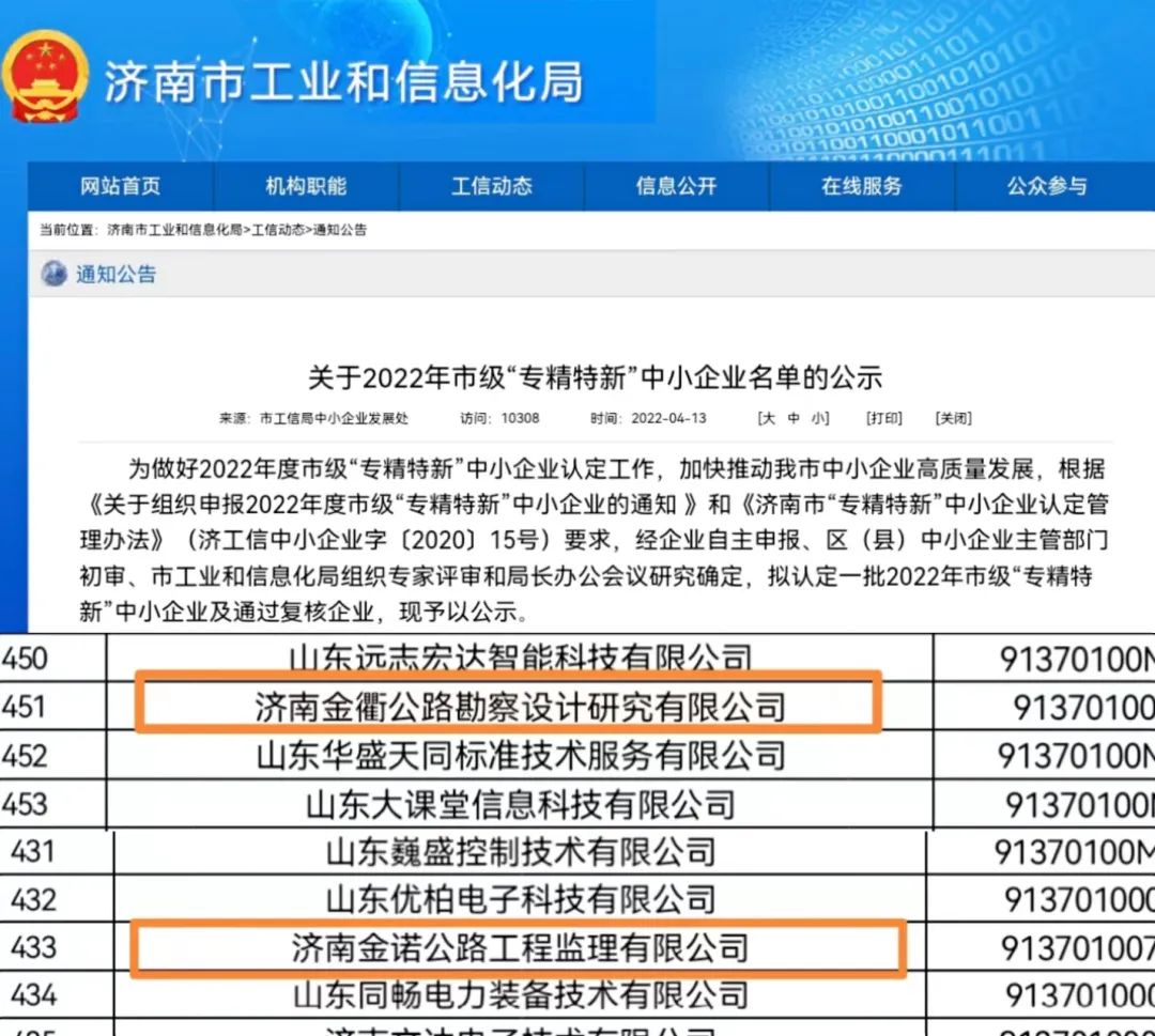 近日,濟南市工業(yè)和信息化局公布了2022年市級“專精特新”中小企業(yè)名單,金衢公司、金諾公司同時榮獲濟南市“專精特新”企業(yè)榮譽稱號。