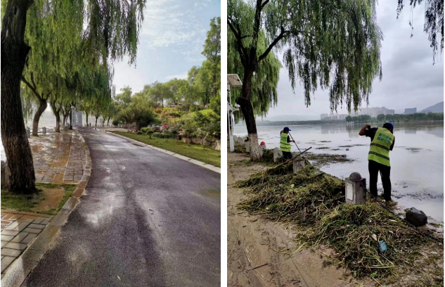降雨過后,長清湖水面及沿岸道路出現(xiàn)不同程度的雜物和淤泥,為有效控制暴雨后對環(huán)境帶來的破壞和污染,景區(qū)組織保潔人員用高壓水車以及掃帚等工具著重道路清掃、清理淤泥,并將重點對湖面雜物進行清理清潔,確保在最短時間內(nèi)恢復景區(qū)環(huán)境。