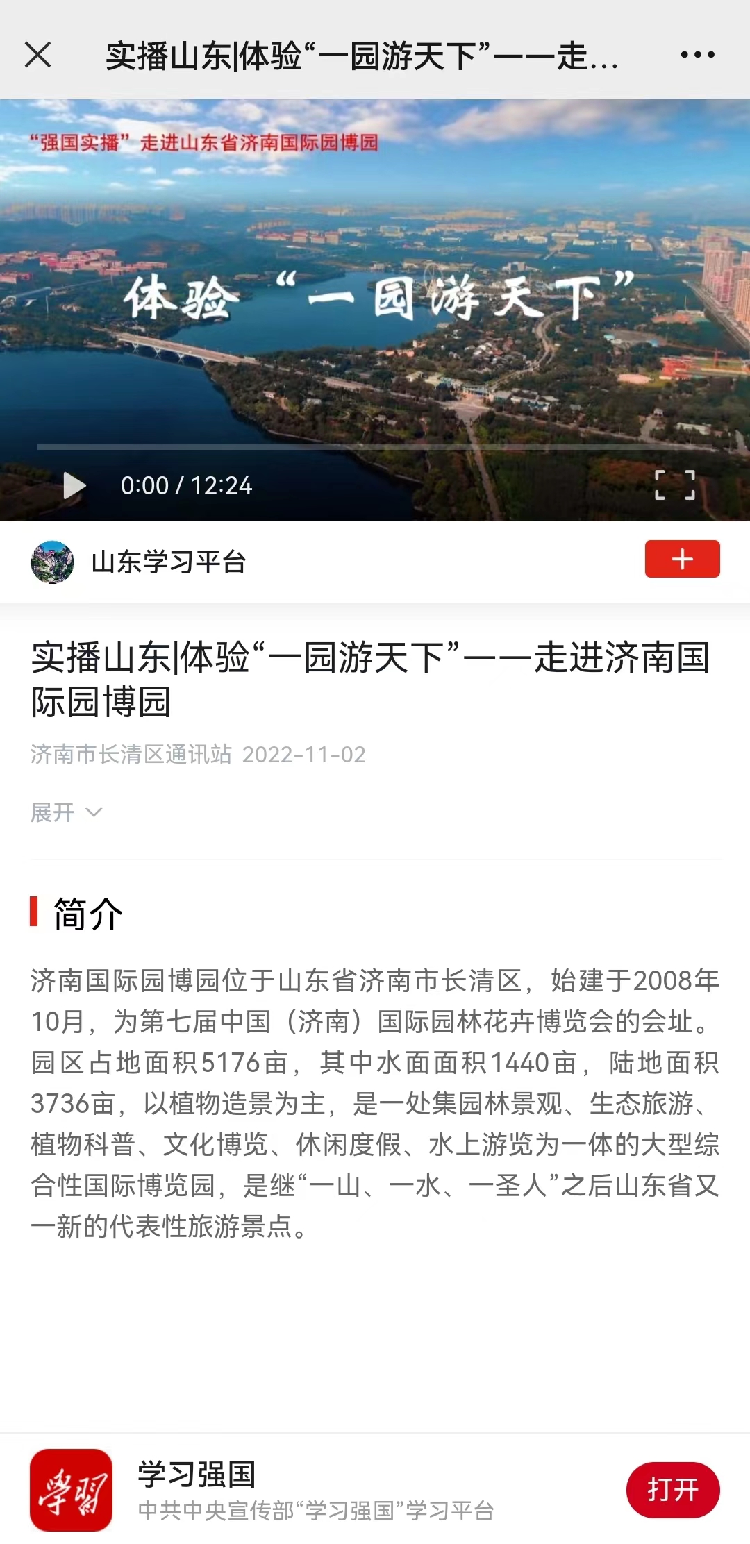 濟南國際園博園亮相學習強國“實播中國”, 帶您“一園游天下”