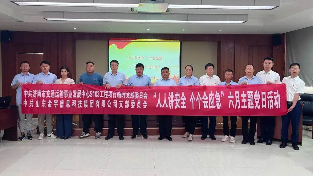 為了讓安全生產意識和理念深入人心,6月25日,山東金宇信息科技集團有限公司黨支部與濟南市交通運輸事業發展中心S103工程項目臨時黨支部開展共建,共同舉辦“人人講安全·個個會應急”安全知識競賽暨6月主題黨日活動,S103工程項目相關參建單位黨員、職工代表參加本次活動。