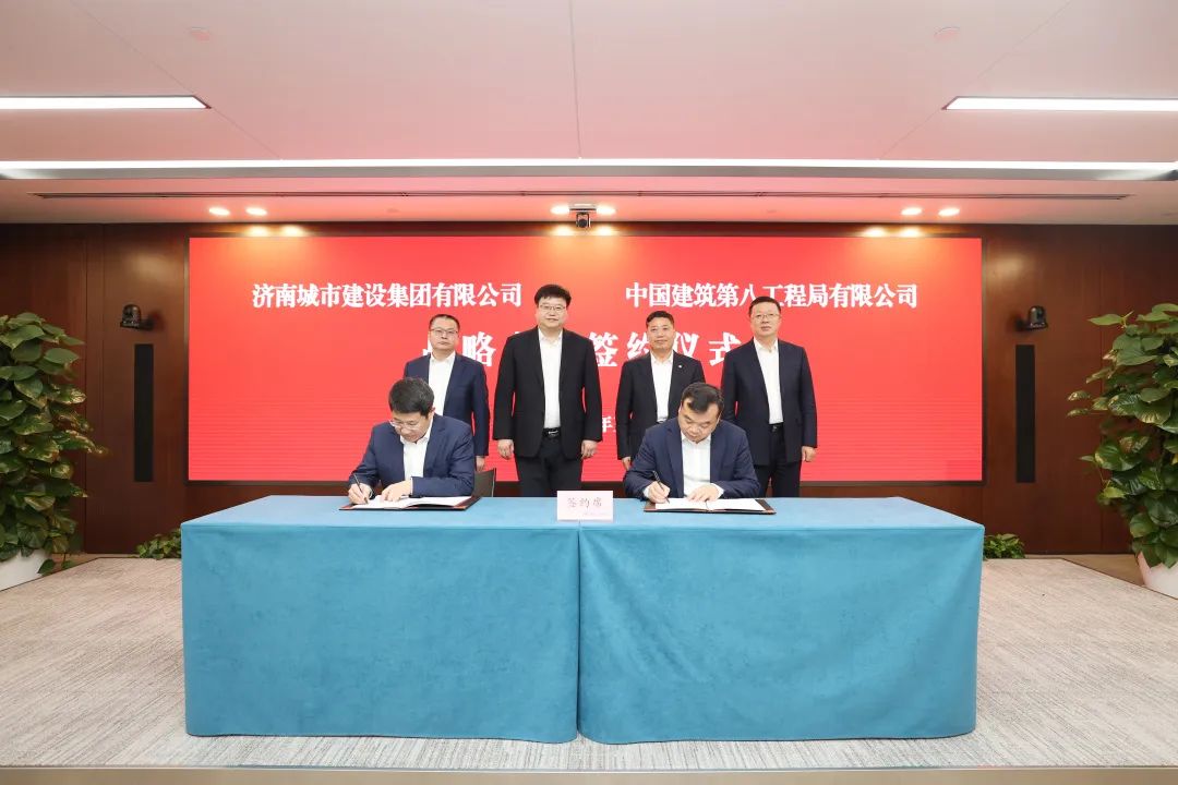 在與會(huì)領(lǐng)導(dǎo)的共同見證下,劉書冬、張建分別代表中建八局與濟(jì)南城市建設(shè)集團(tuán)簽署戰(zhàn)略合作協(xié)議。根據(jù)協(xié)議,雙方將進(jìn)一步整合要素資源,完善溝通機(jī)制,在基礎(chǔ)設(shè)施建設(shè)、片區(qū)綜合開發(fā)、城市更新及運(yùn)營(yíng)等領(lǐng)域深化合作,共同推進(jìn)高質(zhì)量發(fā)展和濟(jì)南強(qiáng)省會(huì)建設(shè)。