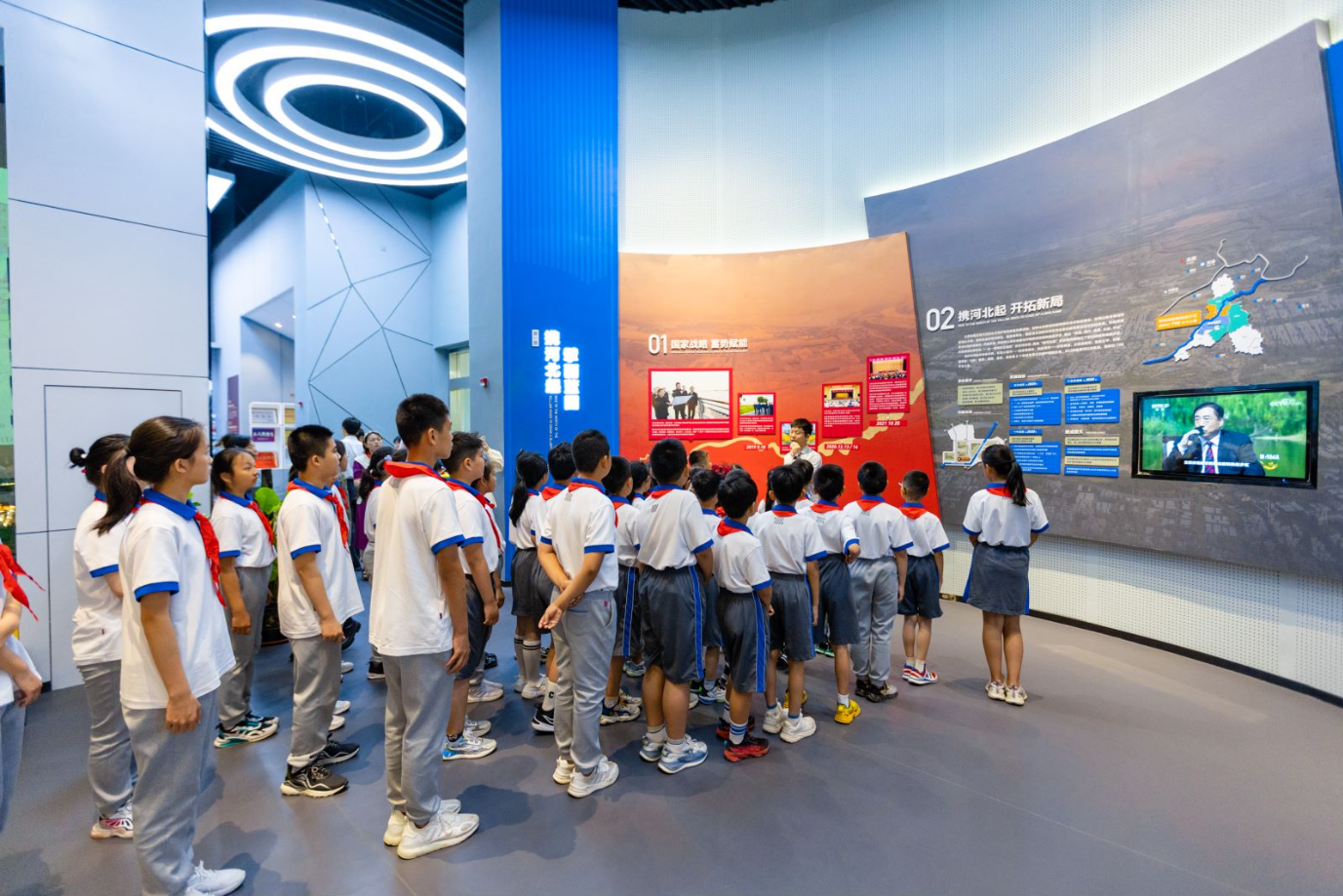 在濟南城市建設集團“四橋四隧”展廳,少先隊員們感受了濟南城市建設集團在落實黃河流域生態保護和高質量發展戰略及“項目建設年”工作部署中的生動實踐。
