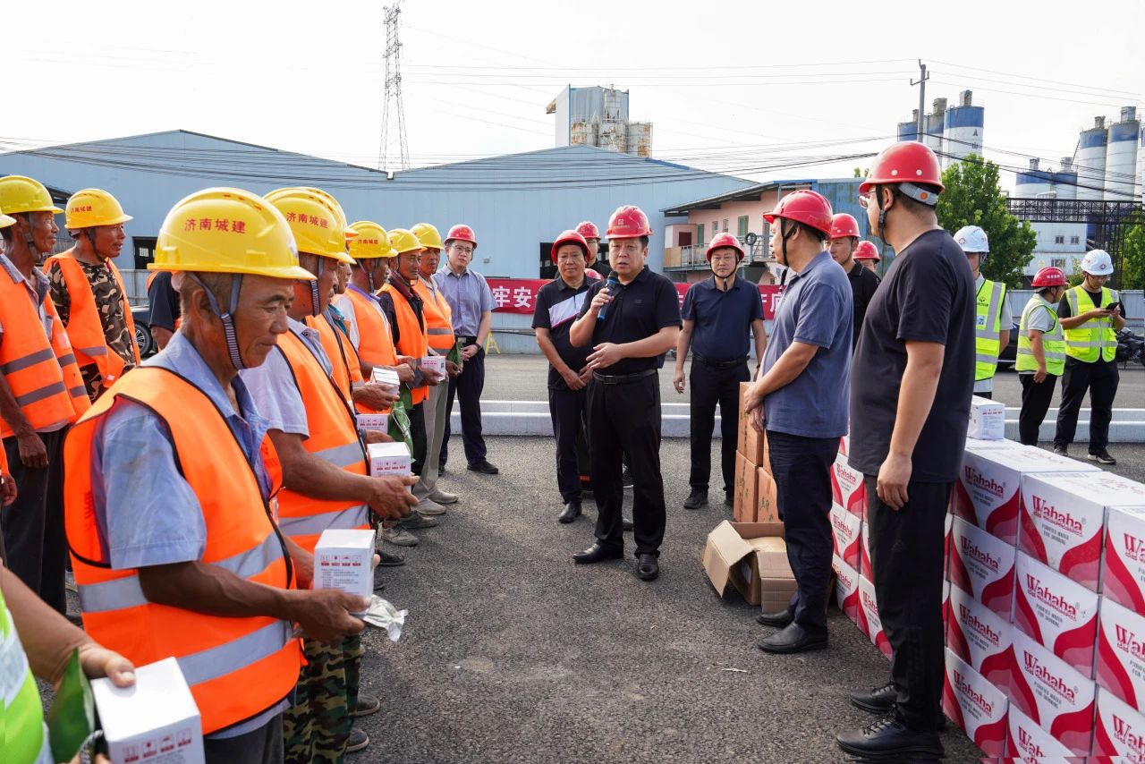 為認真落實夏季高溫期間防暑降溫工作部署,做好高溫天氣作業(yè)勞動保護工作,切實維護一線職工的勞動安全健康權(quán)益,8月6日,建設集團黨委副書記、總經(jīng)理楊峰帶隊到項目一線開展“送清涼”活動,集團總經(jīng)理助理、安全總監(jiān)解漢忠,集團總經(jīng)理助理翟彬參加活動。