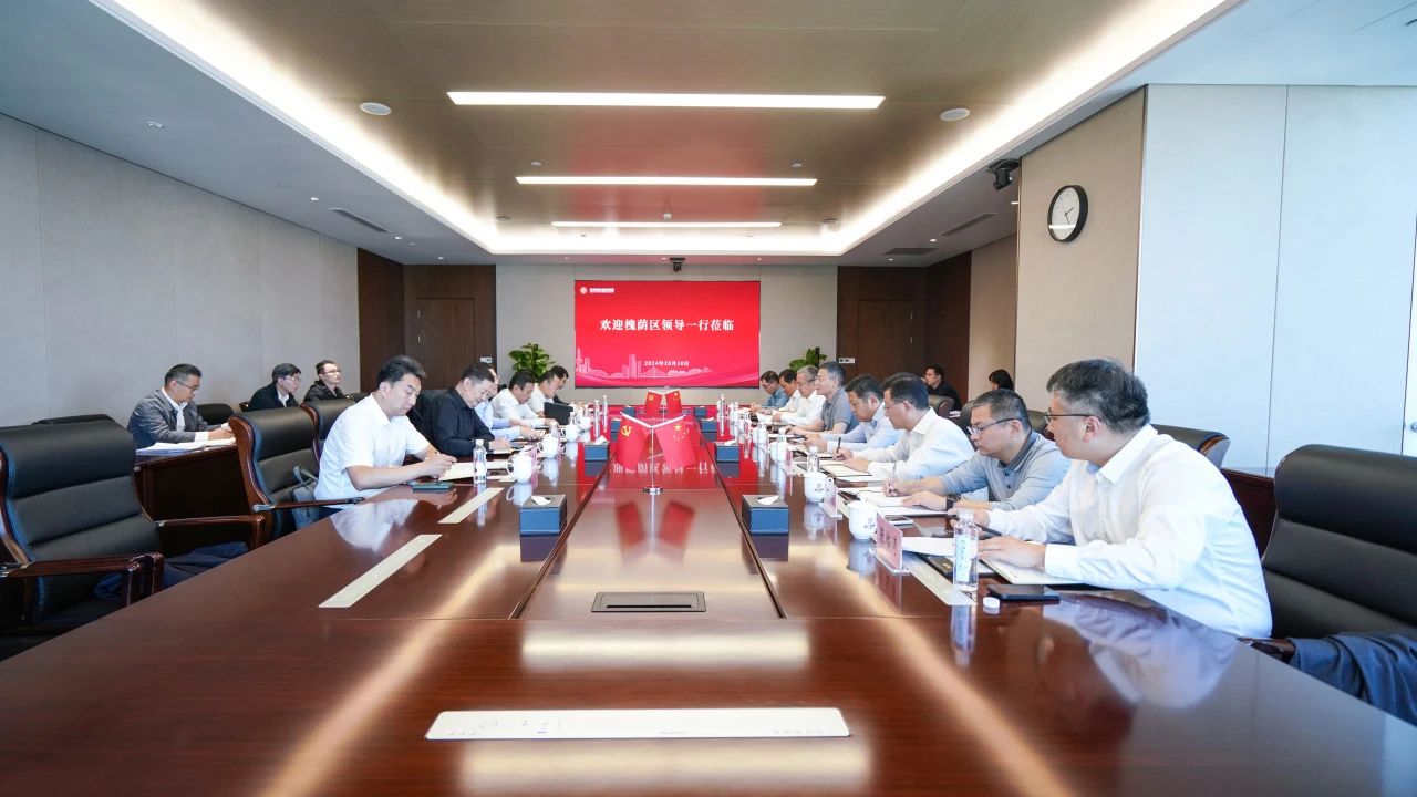 10月10日,槐蔭區委副書記、區長劉敬濤一行到訪建設集團,就片區開發、項目建設、產業合作等事項座談交流,槐蔭區委常委、副區長谷長軍,建設集團黨委書記、董事長許為民,集團黨委副書記、總經理楊峰,集團副總經理徐文東,集團副總經理楊曉東,集團總經理助理、安全總監解漢忠參加會議。