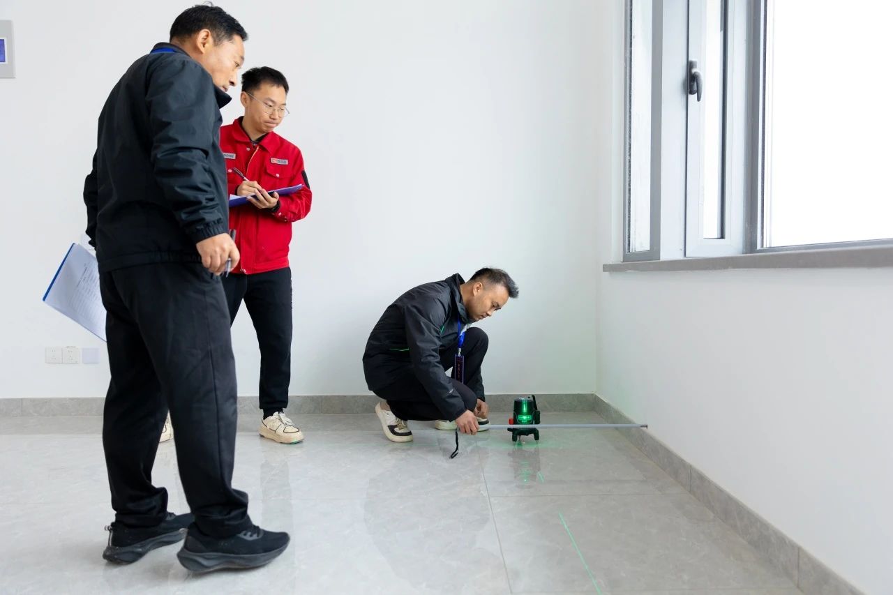 此次競賽立足行業(yè)實(shí)際工作場景,多維度、全方位地檢驗(yàn)參賽選手的質(zhì)量檢驗(yàn)專業(yè)知識和技能水平,設(shè)置理論考核和實(shí)際操作兩部分。理論競賽內(nèi)容包括法律法規(guī)、工程測量相關(guān)規(guī)范基礎(chǔ)知識等,實(shí)操比賽涵蓋了房建工程裝飾階段的測量。