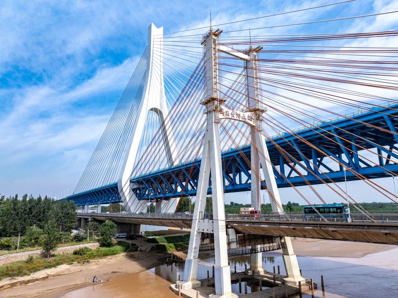 1982年7月,濟(jì)南黃河大橋(老橋)建成通車(chē),作為當(dāng)時(shí)亞洲跨徑最大的公路斜拉橋,入選濟(jì)南“1978—1988泉城十大景觀”。如今,新橋與老橋“并肩”相望,成為黃河上第一座不等跨并橋建設(shè)工程,也是黃河上跨徑最大、鋼橋總長(zhǎng)最長(zhǎng)的公軌分層合建橋梁,刷新“跨黃”橋梁紀(jì)錄。